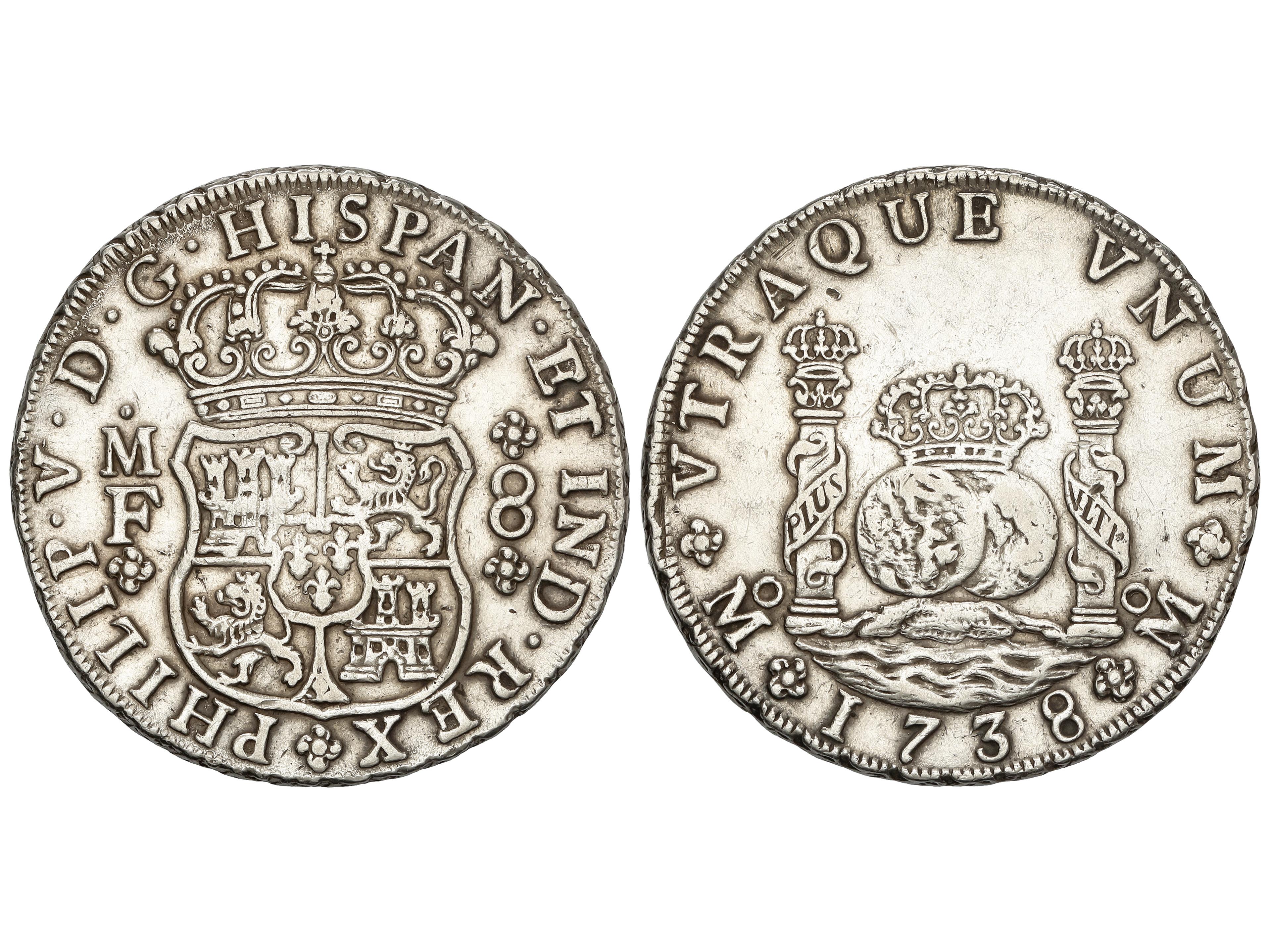 223 image8 Reales. 1738. MÉXICO. M.F. 26,90 grs. Columnario. (Leves golpecitos, algo limpiada). AC-1449. MBC+. (Image1)