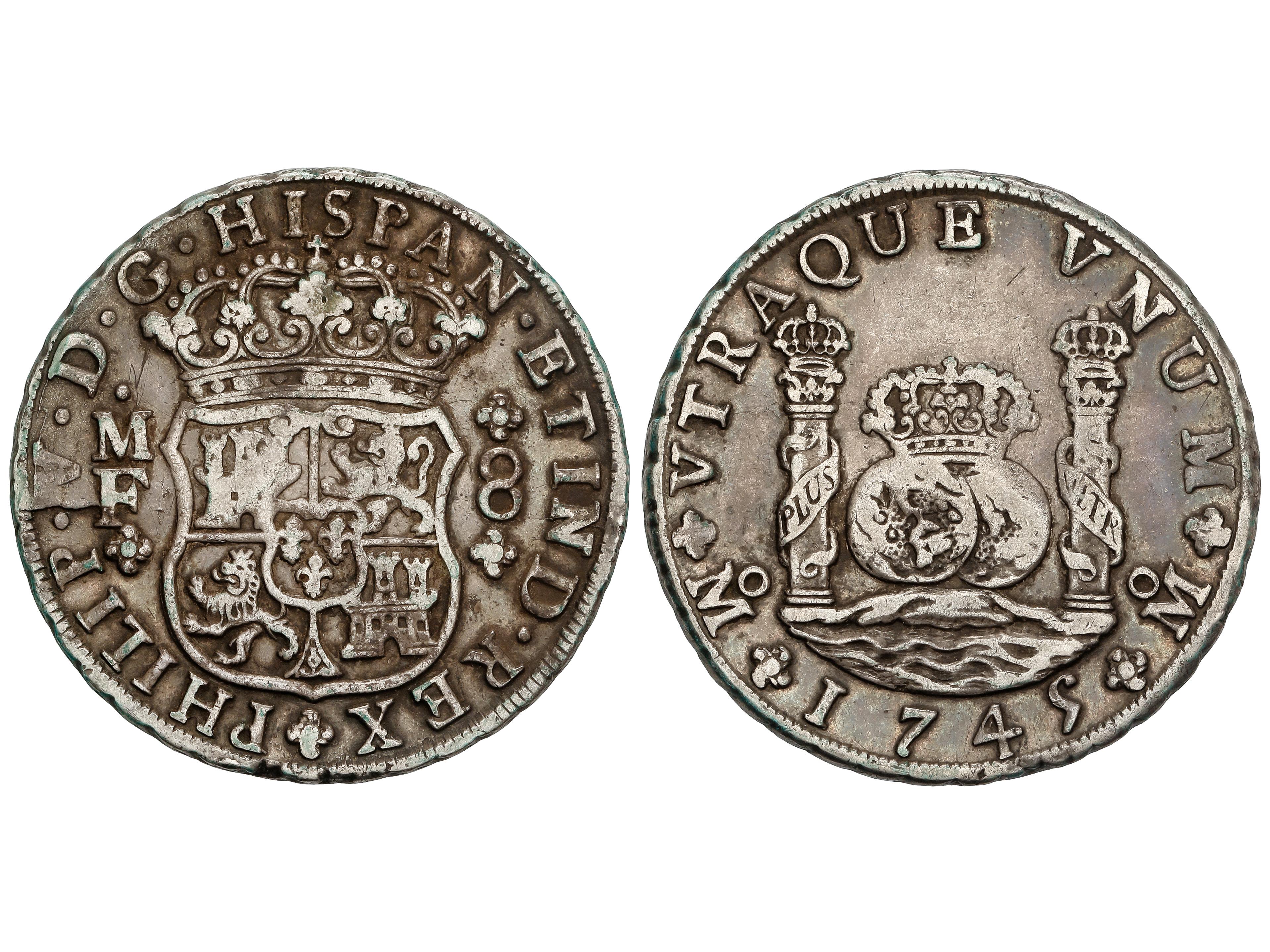 225 image8 Reales. 1745. MÉXICO. M.F. 26,72 grs. Columnario. Pátina oscura. AC-1468. MBC/MBC+. (Image1)