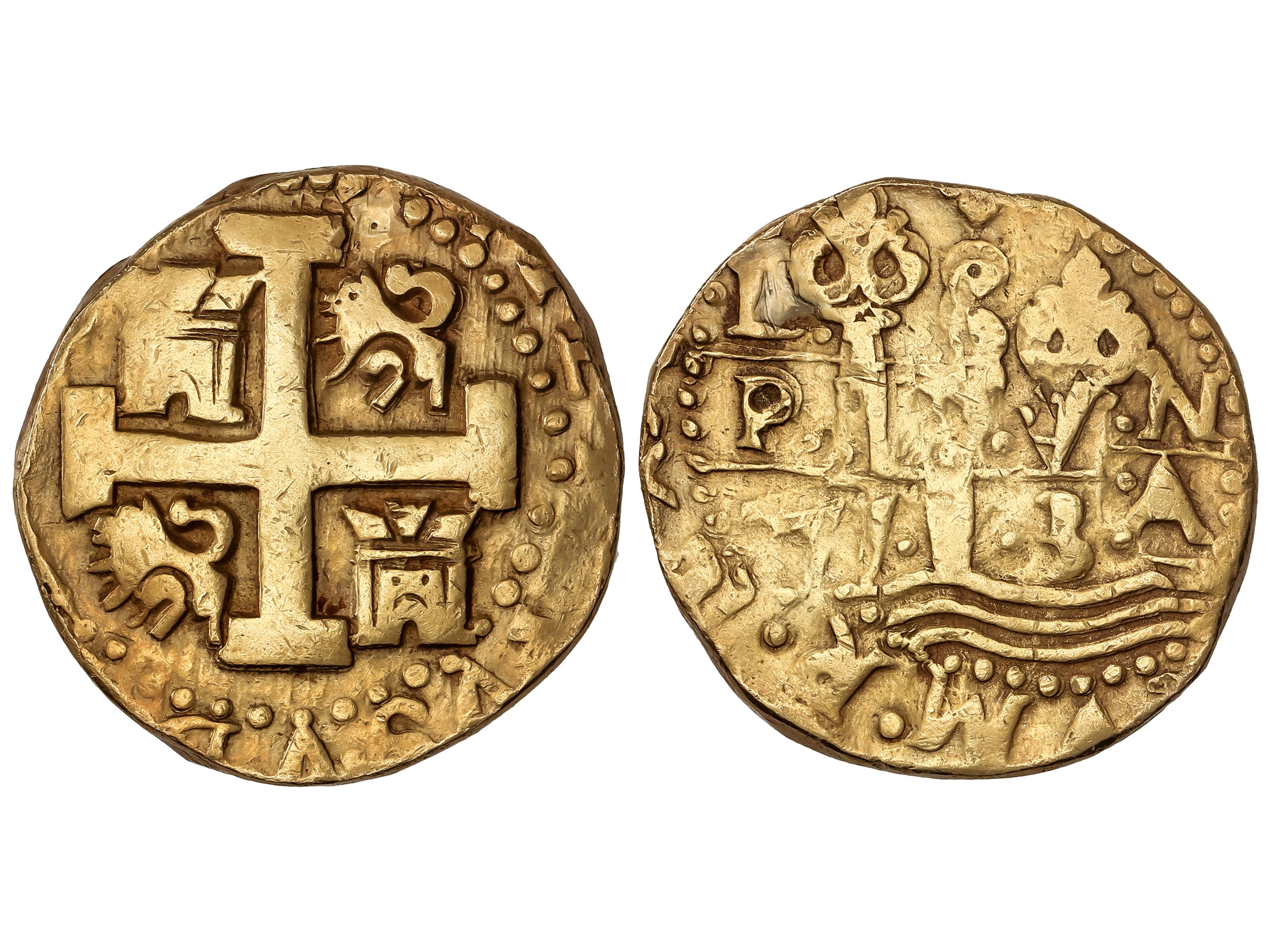 228 image8 Escudos. 173(_). LIMA. N. 27,00 grs. Acuñación algo repintada. Último dígito de la fecha no visible. (Agujero tapado). RARA. AC-tipo 279. MBC/MBC-. (Image1)