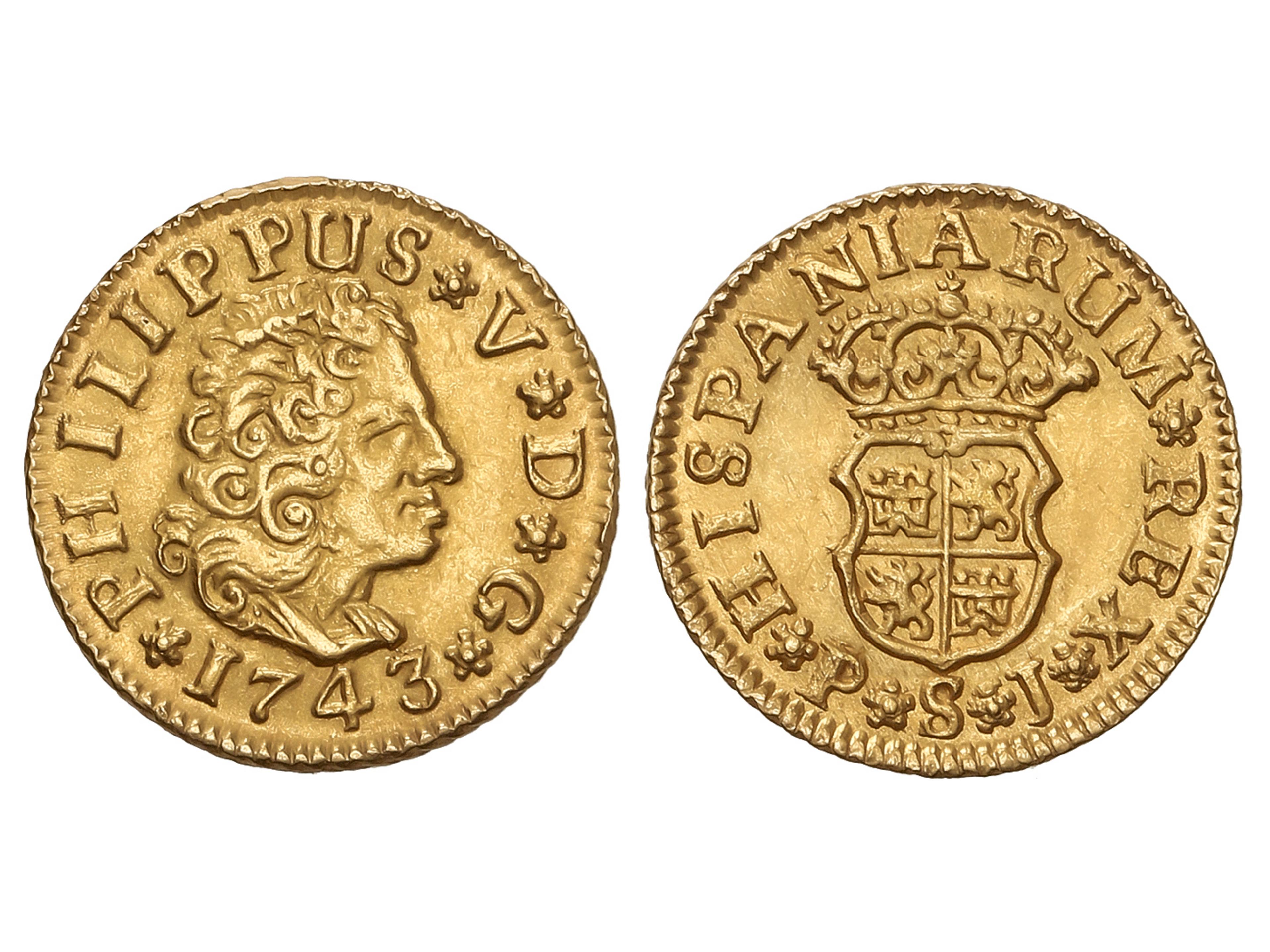226 image1/2 Escudo. 1743. SEVILLA. P.J. 1,78 grs. Brillo original. AC-1646. EBC. (Image1)