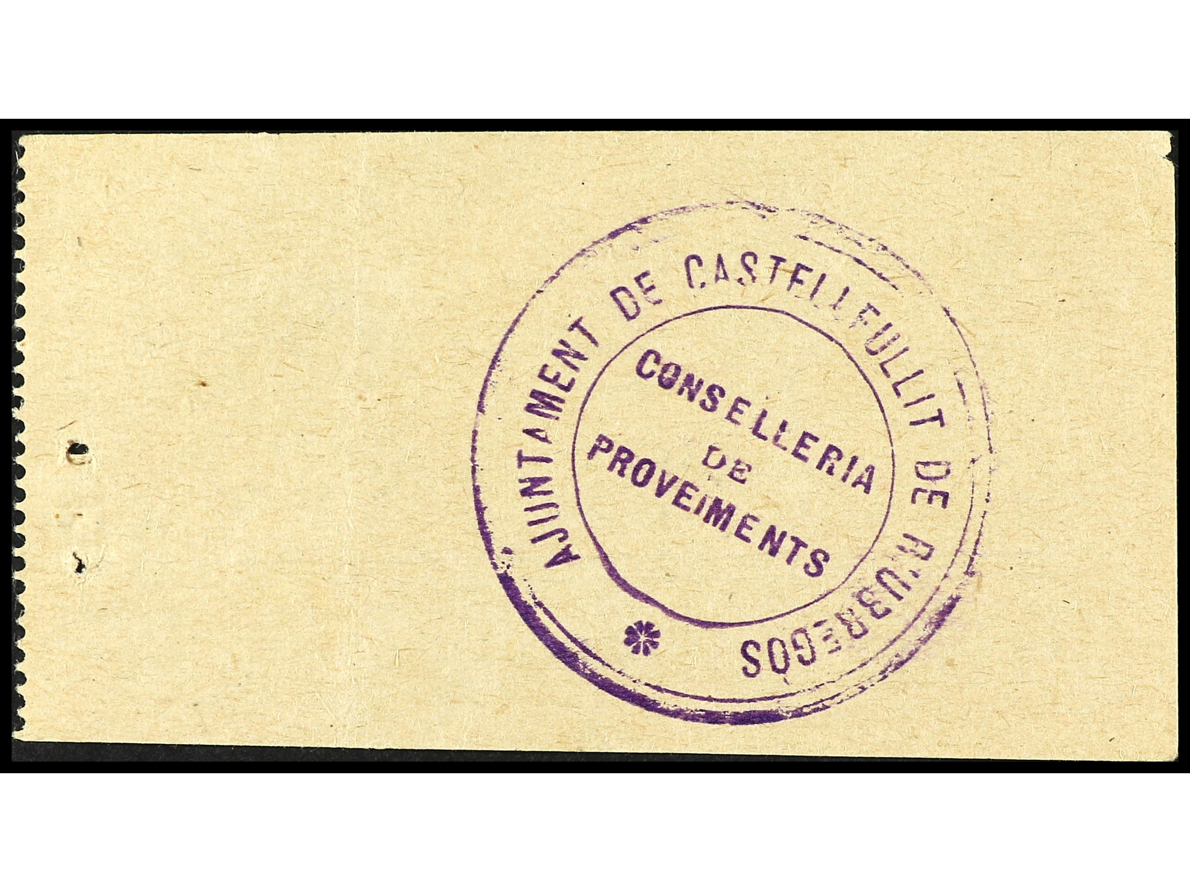 Vale por 10 Quilos de Pan al precio de 8 Pesetas y 70 Céntimos. SINDICAT AGRÍCOLA CASTELLFULLIT DE RIUBREGÓS. Papel. Sello tampón en el reverso del Ayuntamiento de Castellfullit. (Puntos de grapa). EBC. (Image1) (Image2)