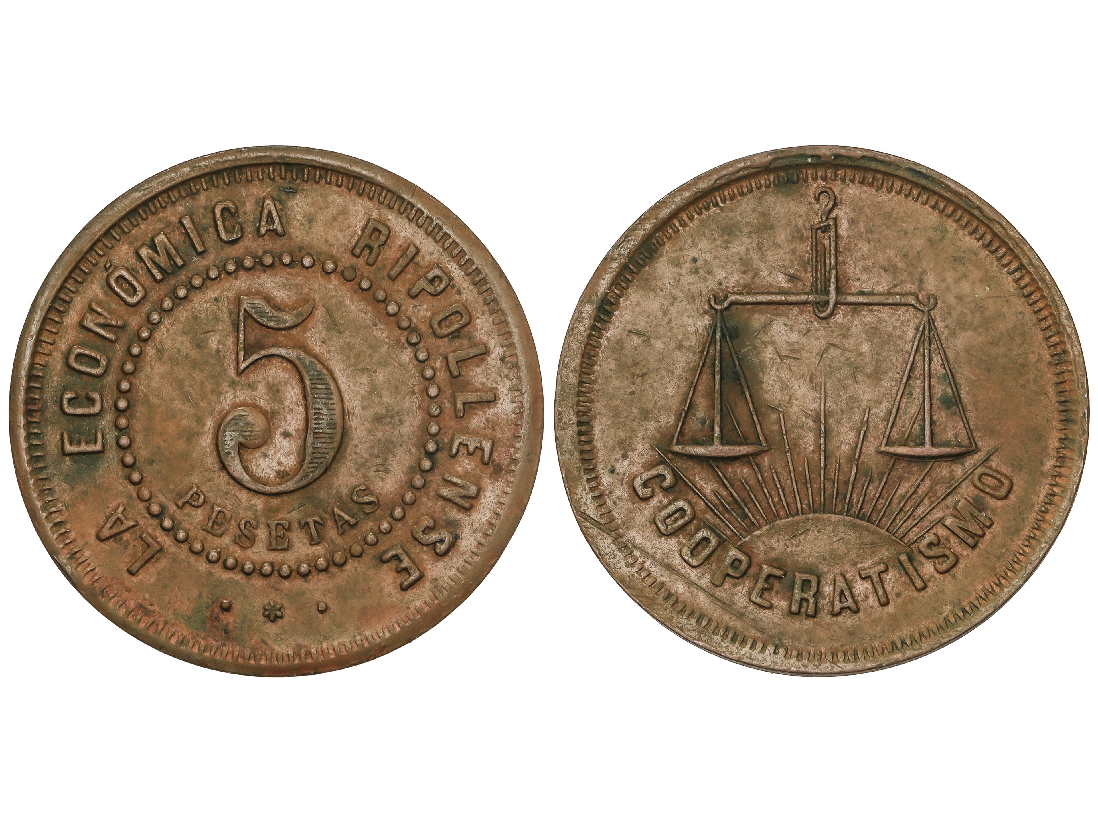 5 Pessetes. LA ECONOMICA RIPOLLENSE. RIPOLL. AE. L-2860. MBC+. (Image1)
