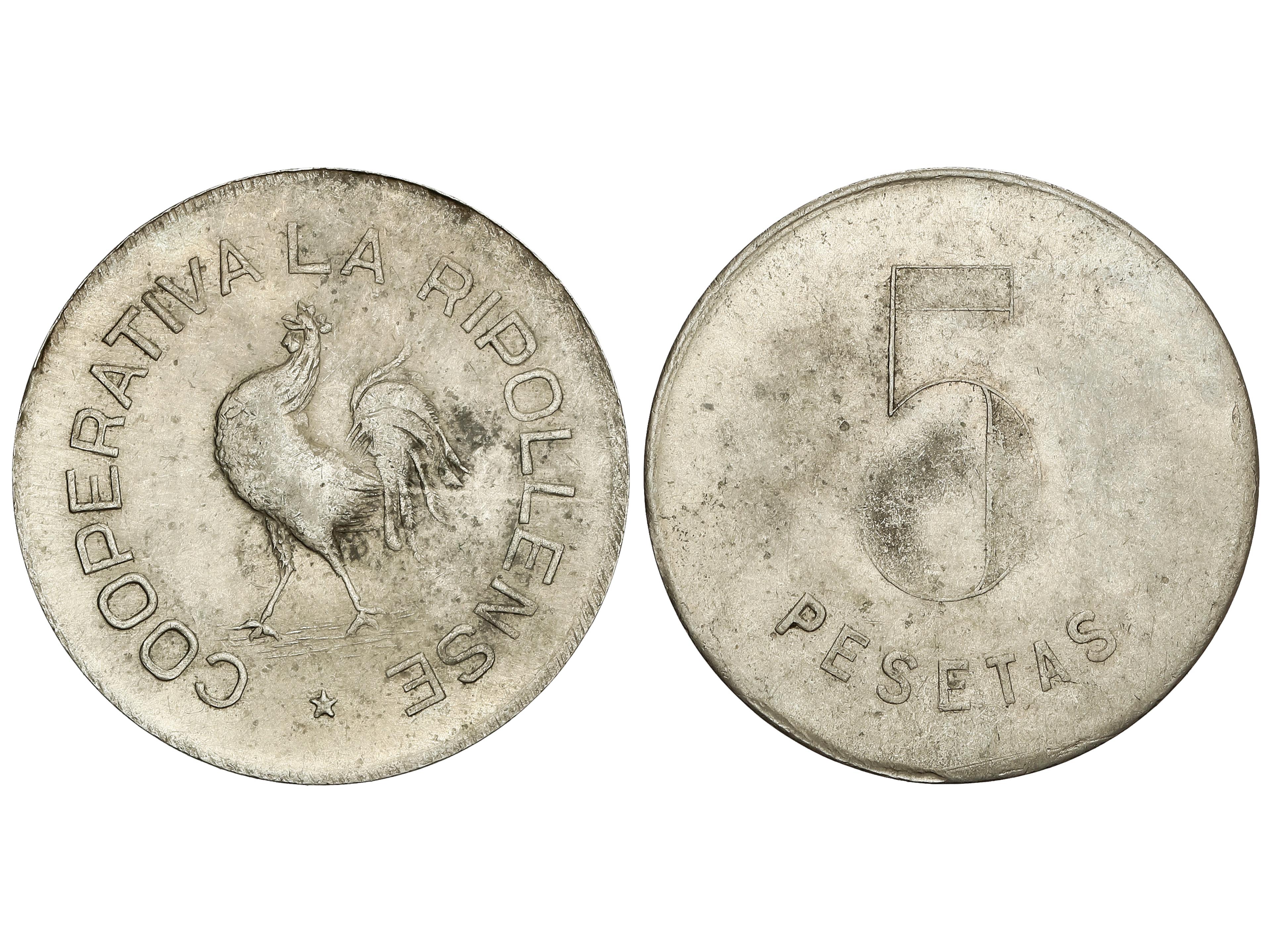 5 Pessetes. COOPERATIVA LA RIPOLLENSE. RIPOLL. Ni. L-2866. MBC. (Image1)