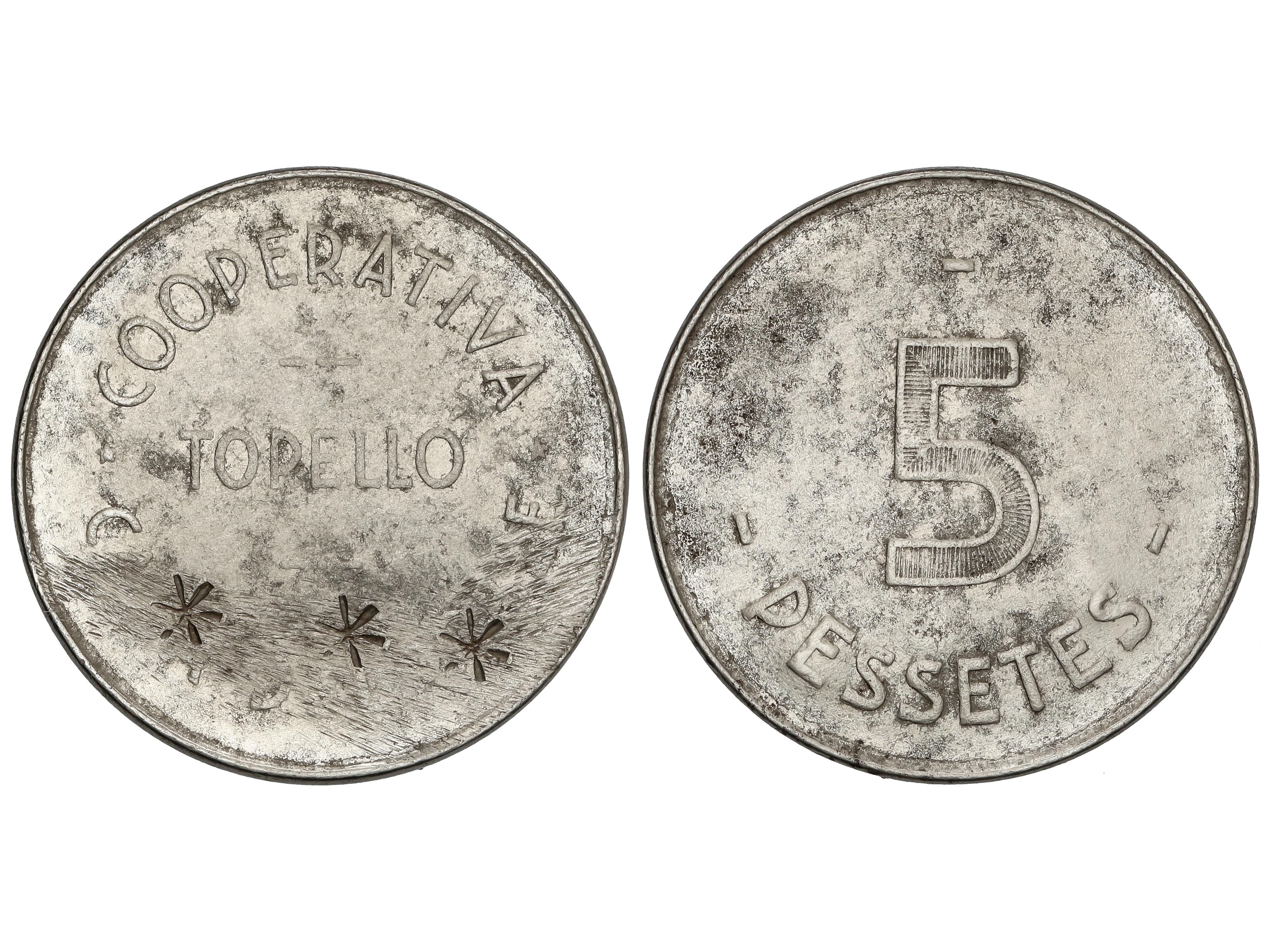 5 Pessetes. COOPERATIVA CASA DEL POBLE. TORELLÓ. Ni. RARA. L-3030v. MBC. (Image1)