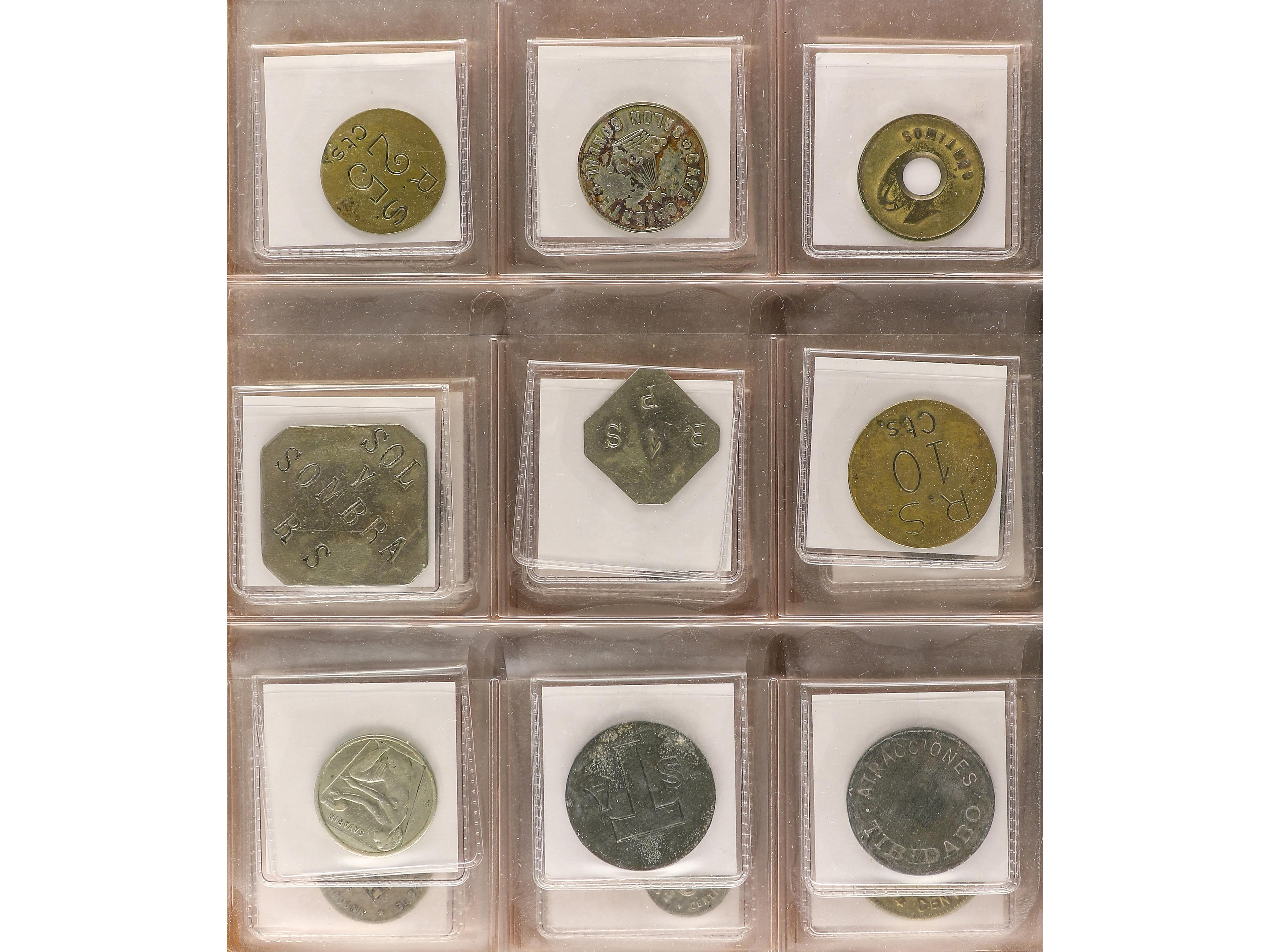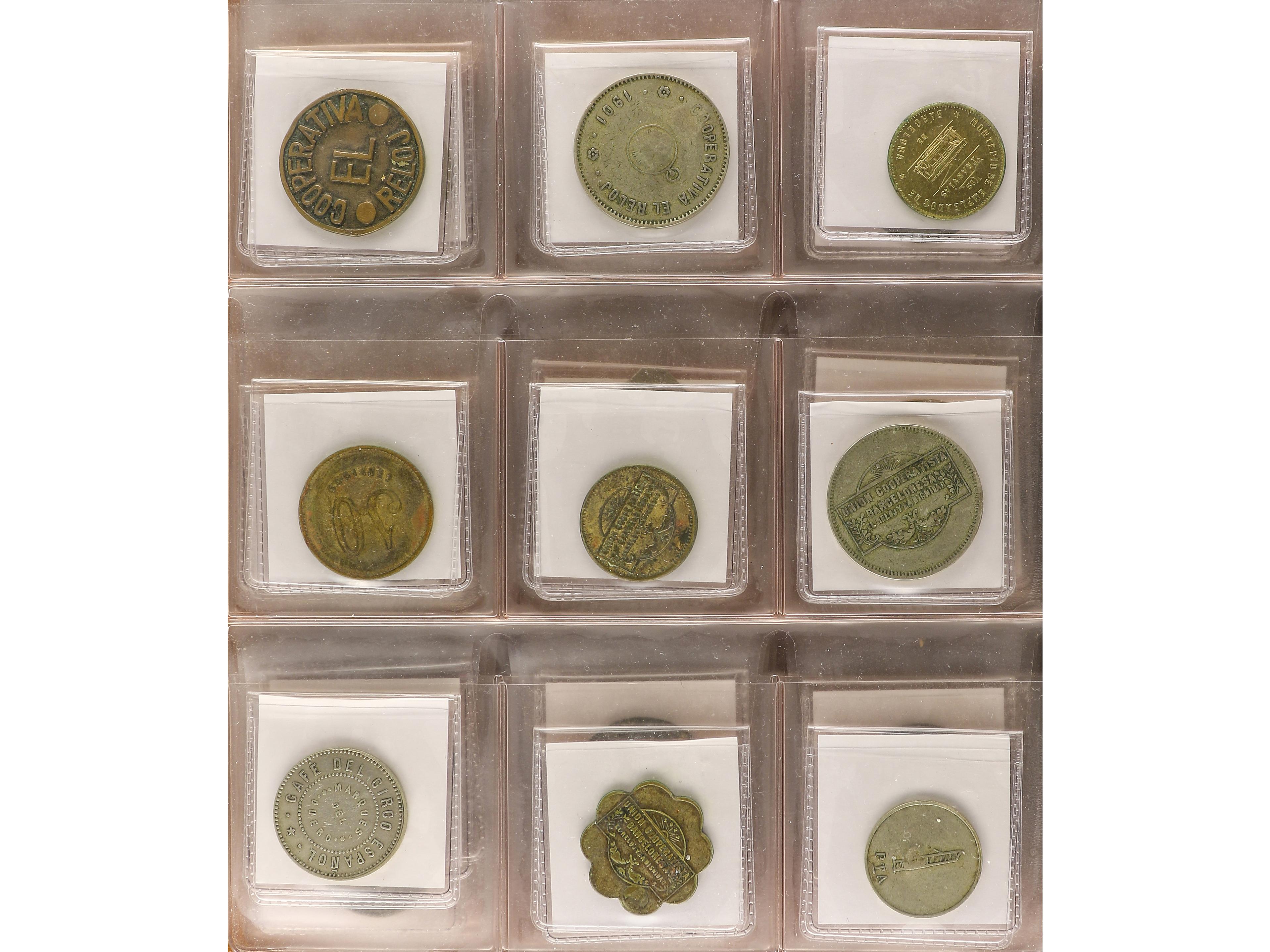 Lote 58 fichas y vales. Muchas diferentes. A EXAMINAR. MBC+ a SC. (Image1) (Image2)