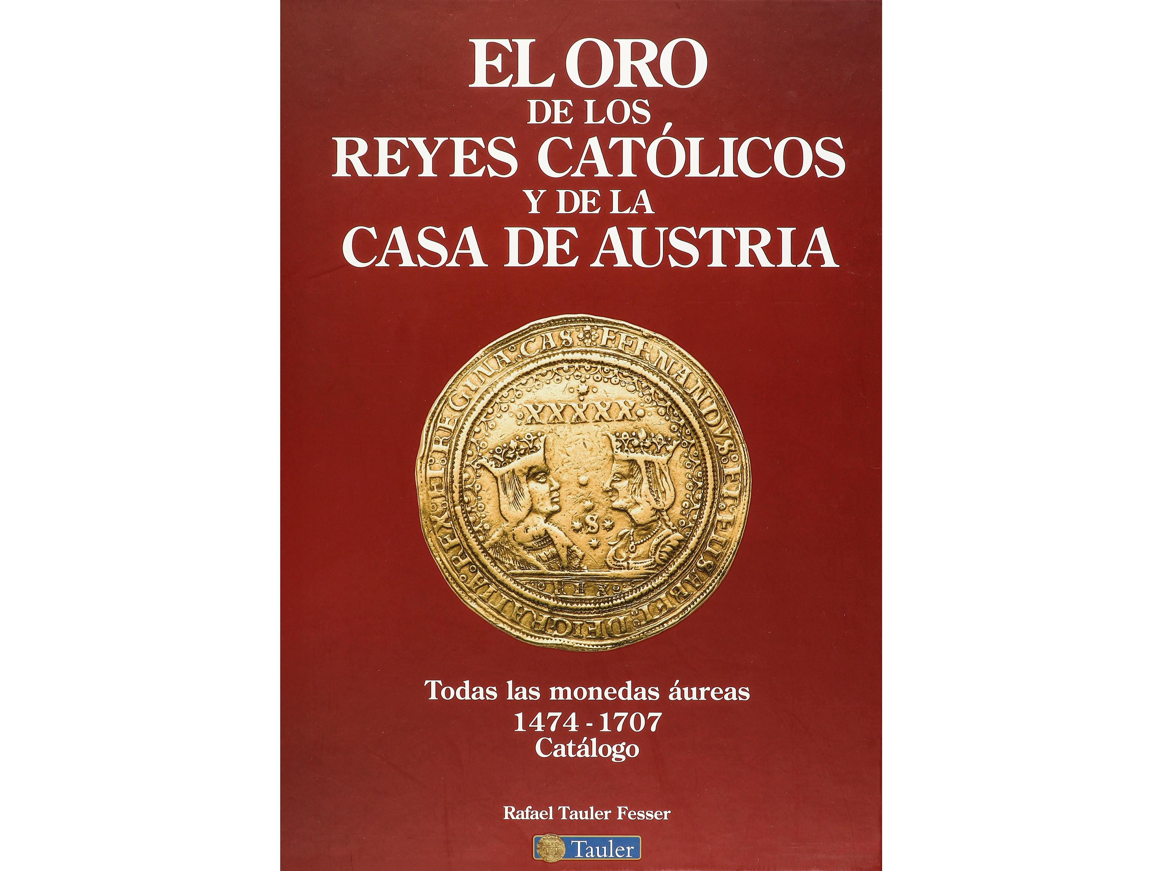 Tauler Fesser, Rafael. EL ORO DE LOS REYES CATÓLICOS Y DE LA CASA DE AUSTRIA. TODAS LAS MONEDAS ÁUREAS 1474-1707. Madrid, 2017. 736 páginas con fotografías a color. Distingue tipos de monedas según el reinado: la ceca, el