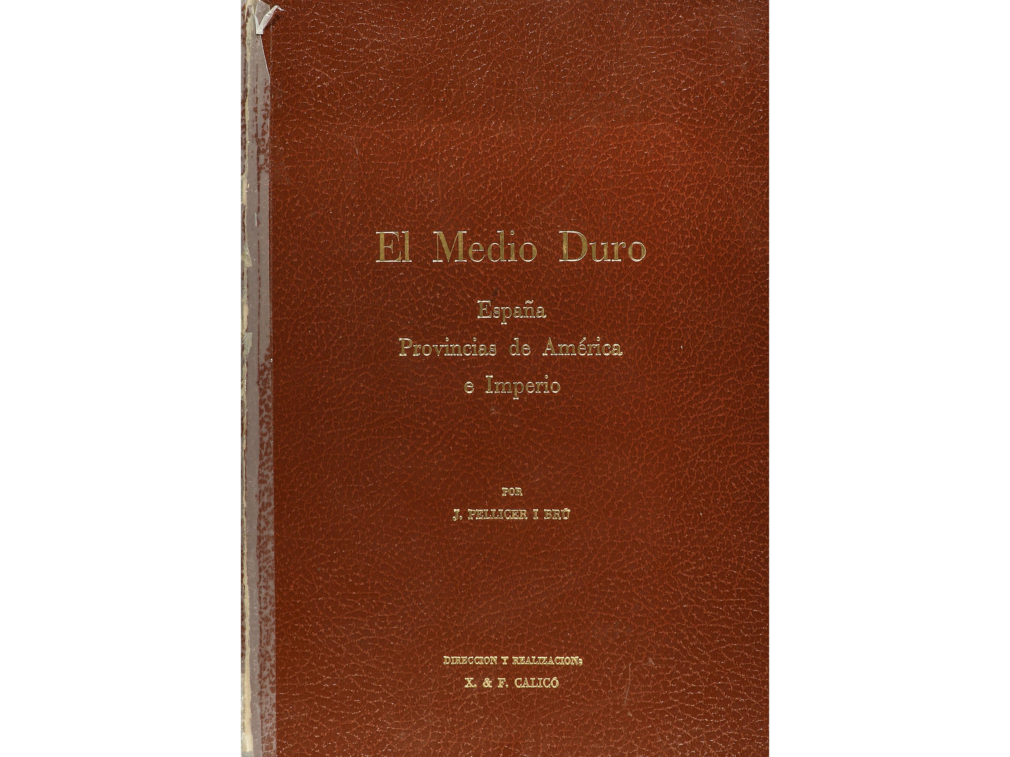 Pellicer i Bru, J. EL MEDIO DURO. ESPAÑA, PROVINCIAS DE AMÉRICA E IMPERIO. Barcelona, 1971. 425 páginas con fotografías en blanco y negro. En cartoné. (Lomera reparada con adhesivo). EBC. (Image1)