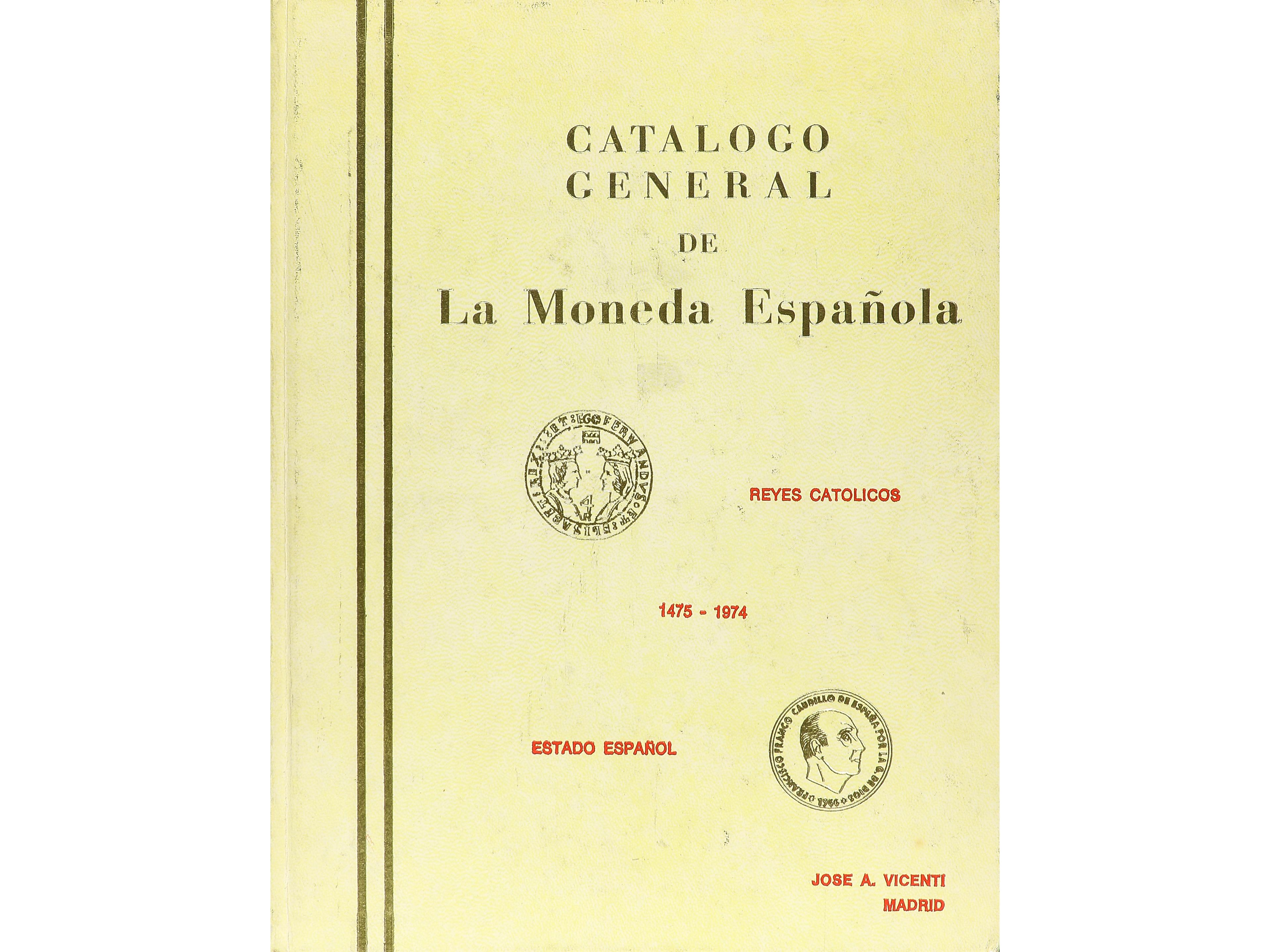 Vicenti, José A. CATÁLOGO GENERAL DE LA MONEDA ESPAÑOLA. REYES CATÓLICOS 1475-1974 ESTADO ESPAÑOL. Madrid, 1973. 315 páginas con fotografías en blanco y negro. En cartoné. EBC-. (Image1)