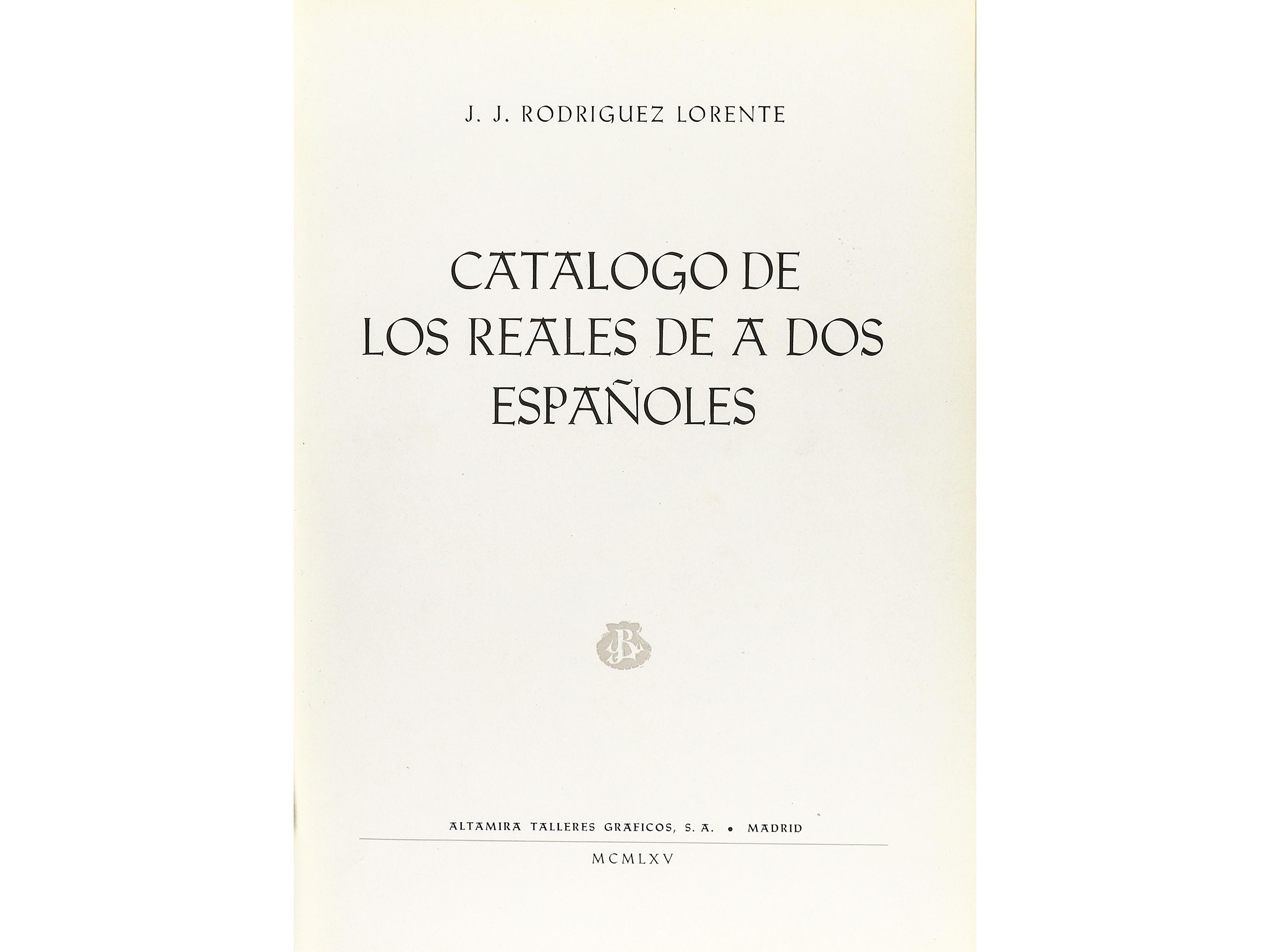 Rodríguez Lorente, J.J. CATÁLOGO DE LOS REALES DE A DOS ESPAÑOLES. Madrid, 1965. 224 páginas con fotografías en blanco y negro. Ejemplar numerado, nº 5. (Manchas de humedad). EBC. (Image1)