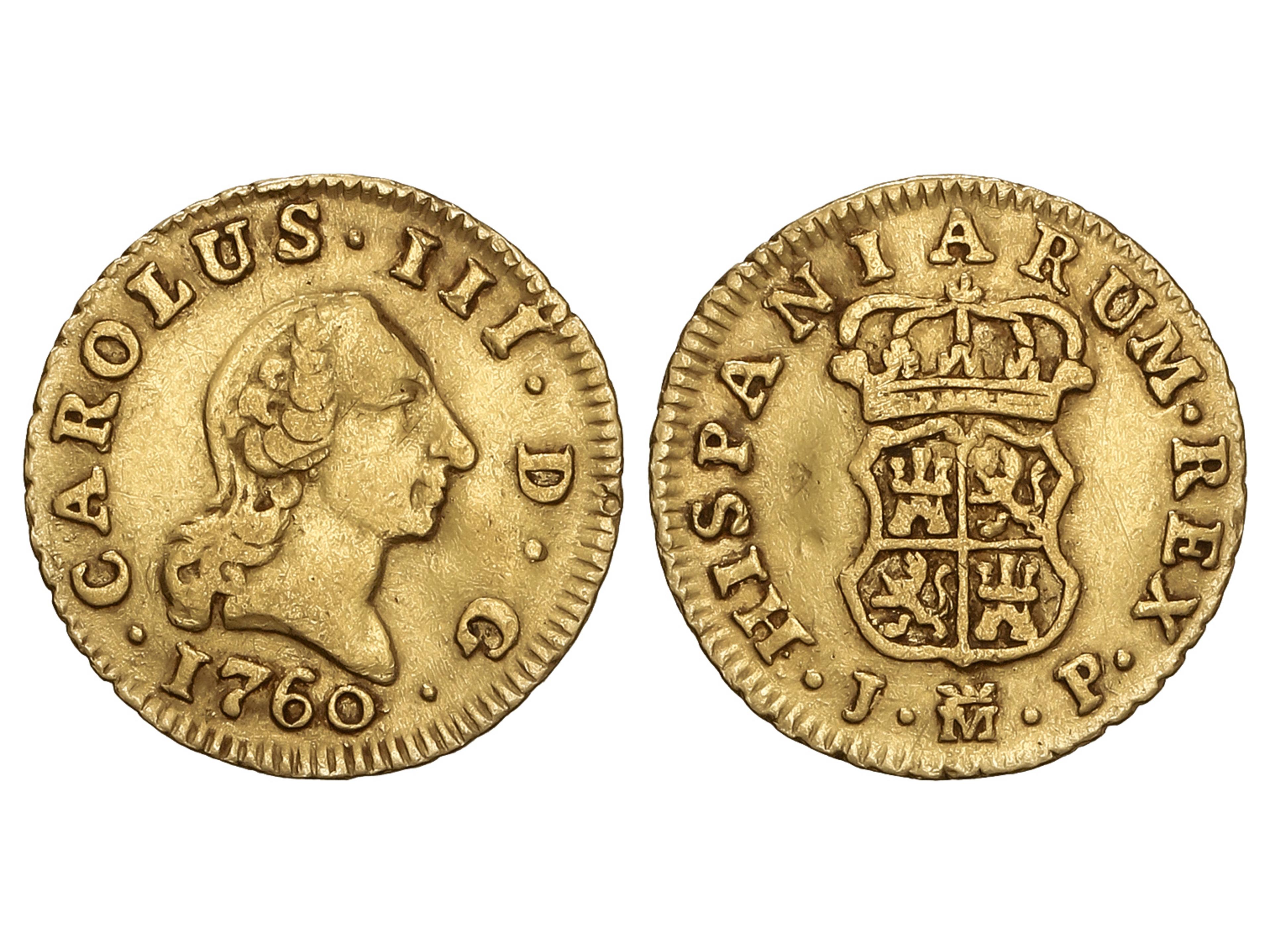 1/2 Escudo. 1760. MADRID. J.P. 1,74 grs. Cara de Rata. (Cospel algo doblado). AC-1242. MBC. (Image1)