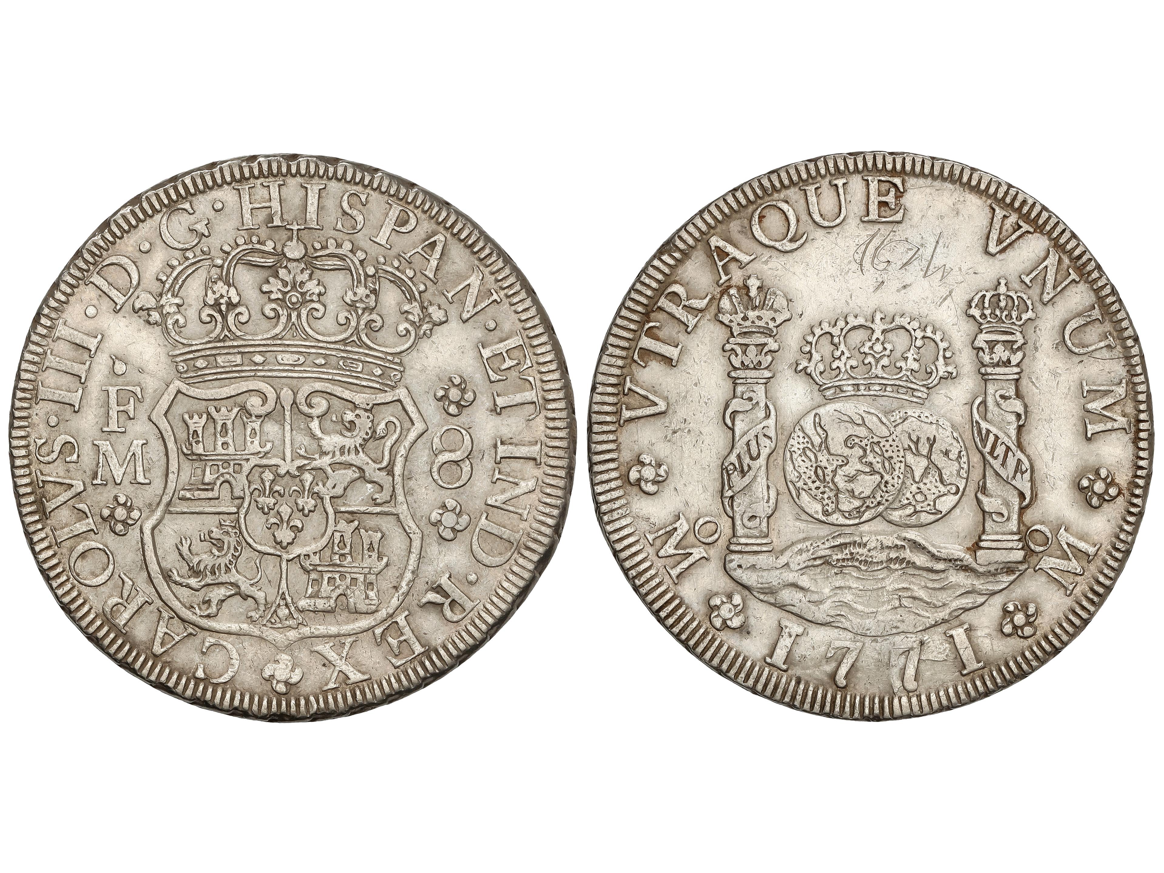 Reales. 1771. MÉXICO. F. M. 26,84 grs. (Graffiti en reverso). AC- 1103. MBC+. (Image1)