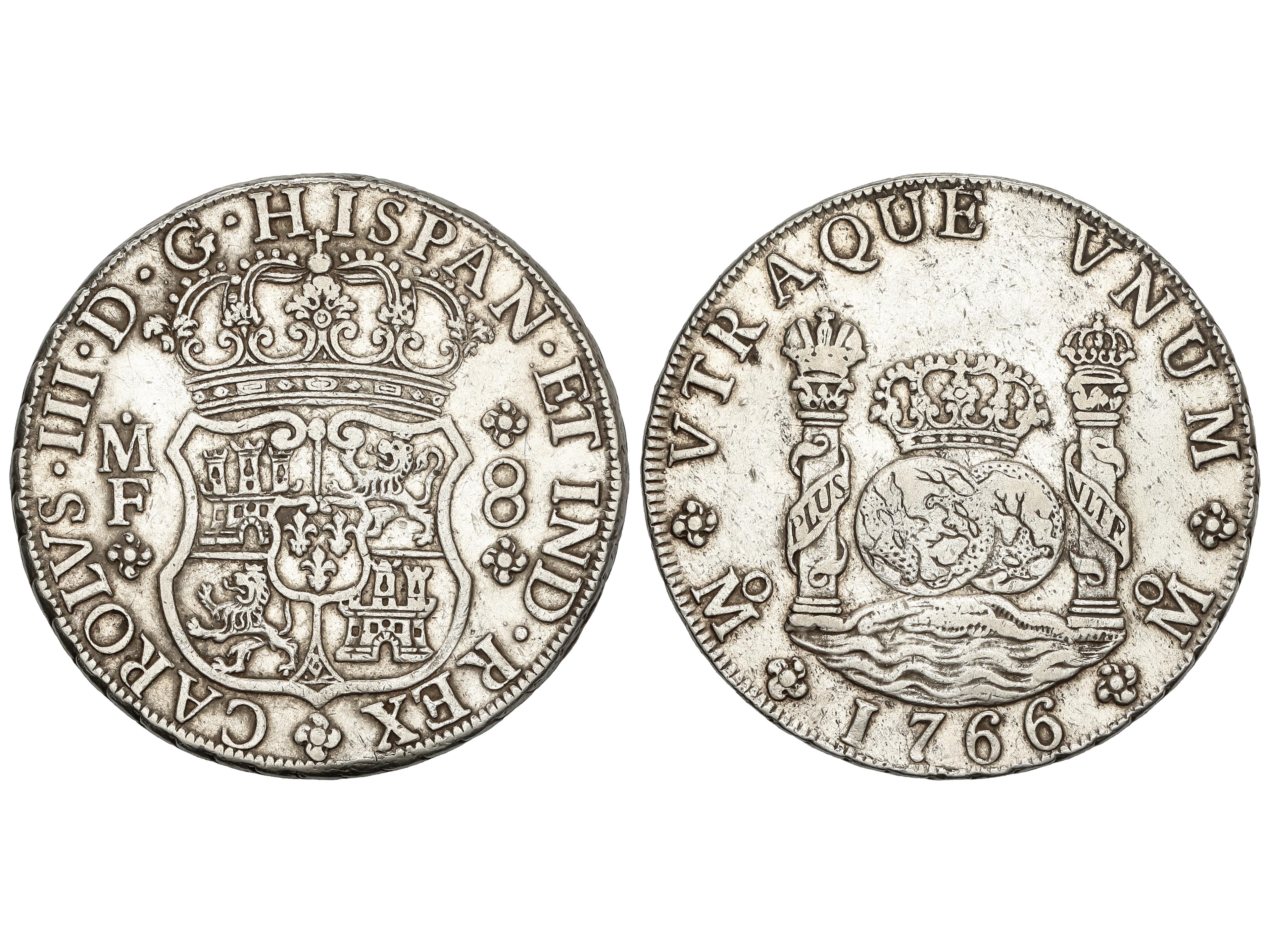 Reales. 1766. MÉXICO. M.F. 26,88 grs. Columnario. (Leves golpecitos, limpiada). AC-1090. MBC+. (Image1)