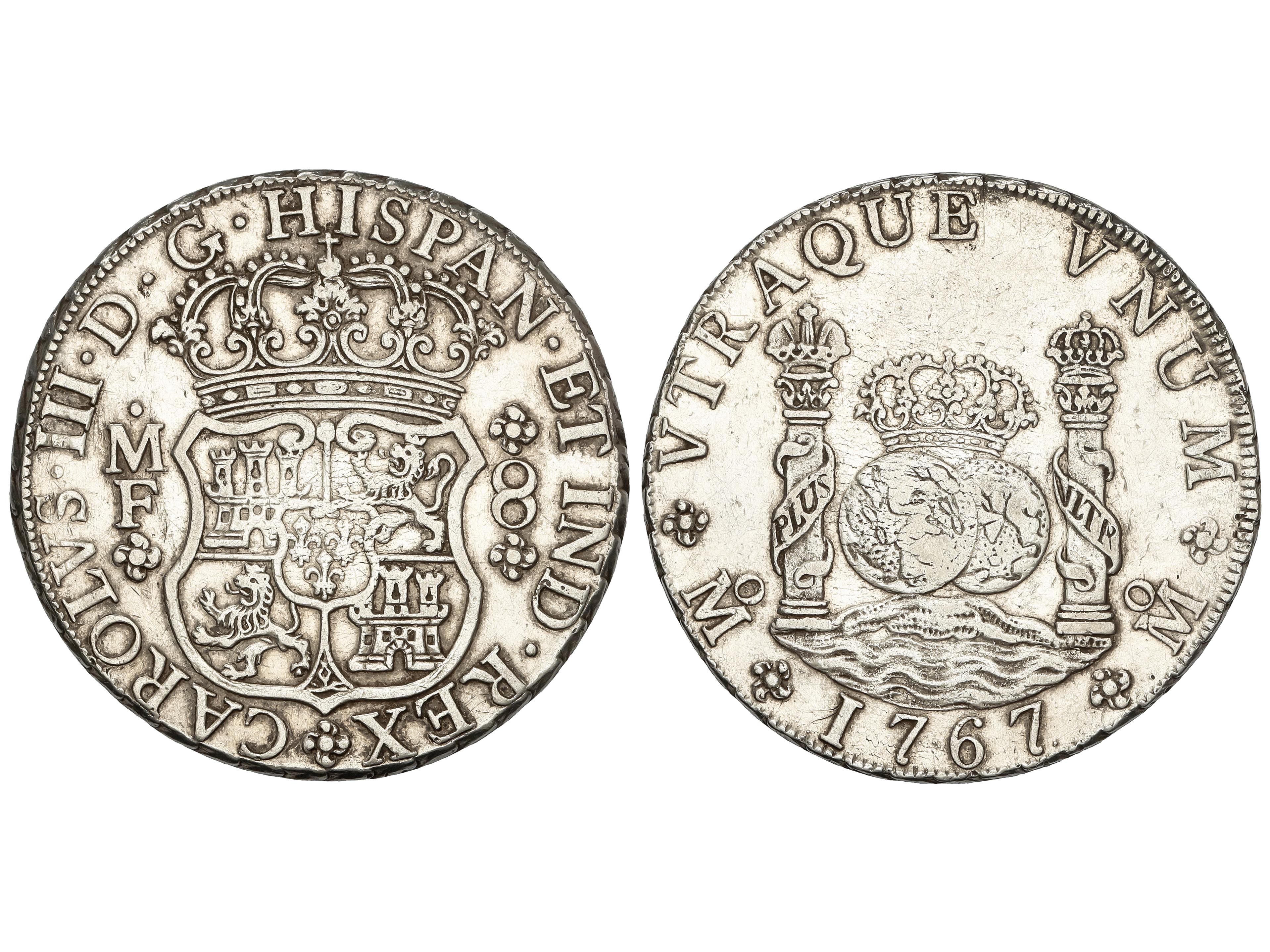 Reales. 1767. MÉXICO. M.F. 26,84 grs. Columnario. (Leves golpecitos, algo limpiada). AC-1092. MBC+. (Image1)