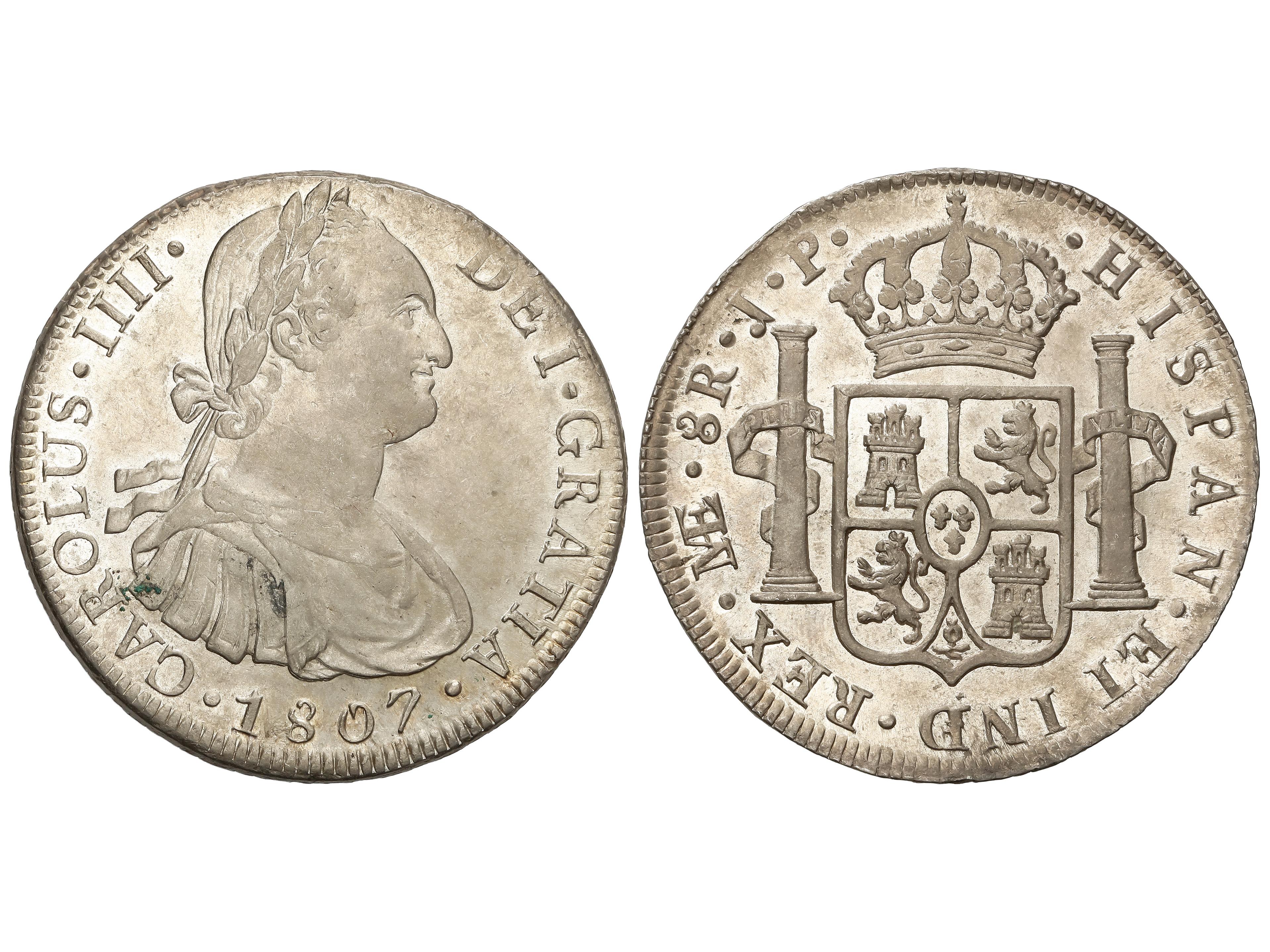 Reales. 1807. LIMA. J.P. 26,15 grs. (Alguna leve impureza). Brillo original. BUEN EJEMPLAR. AC-927. EBC+. (Image1)