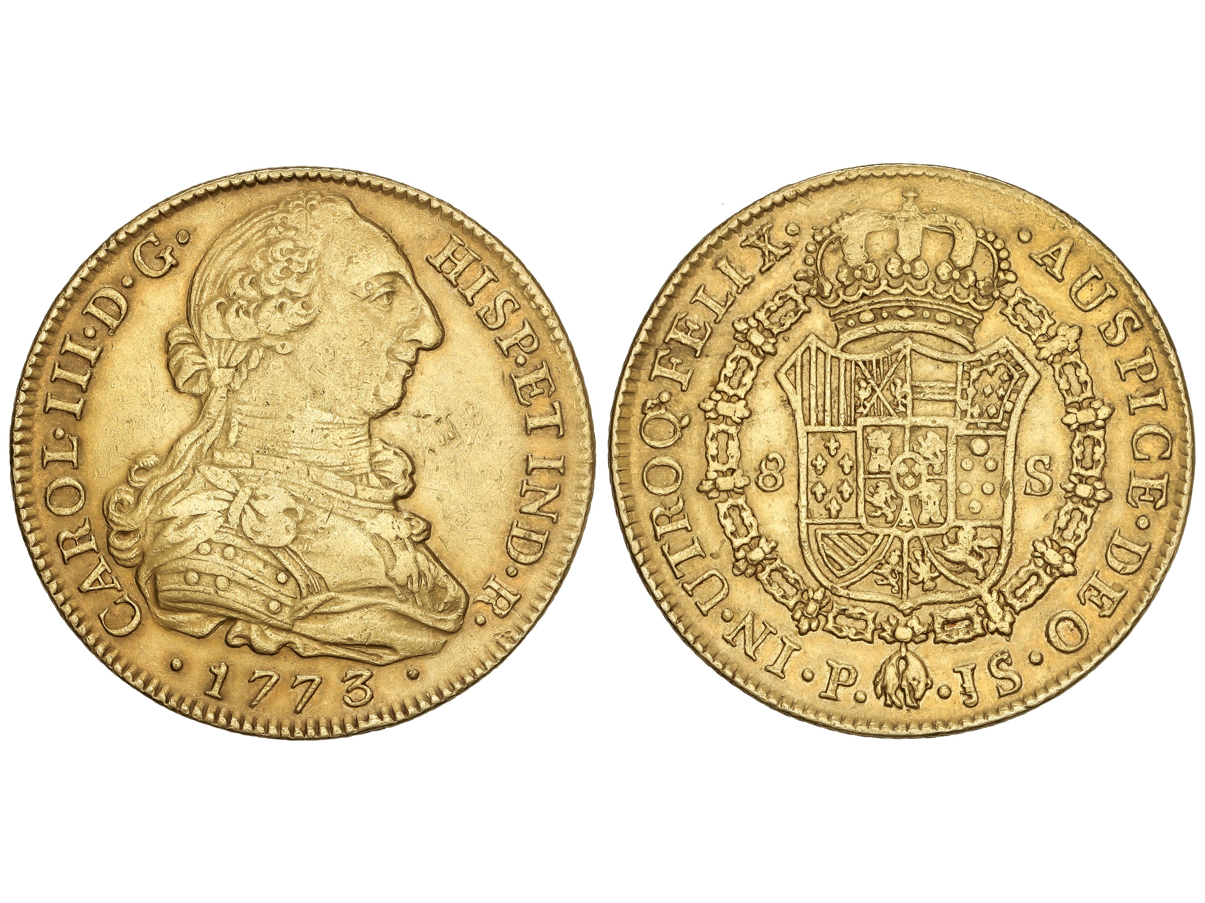 Escudos. 1773. POPAYÁN. J.S. 26,86 grs. (Pequeños golpecitos). AC-2039; XC-800. (MBC+). (Image1)