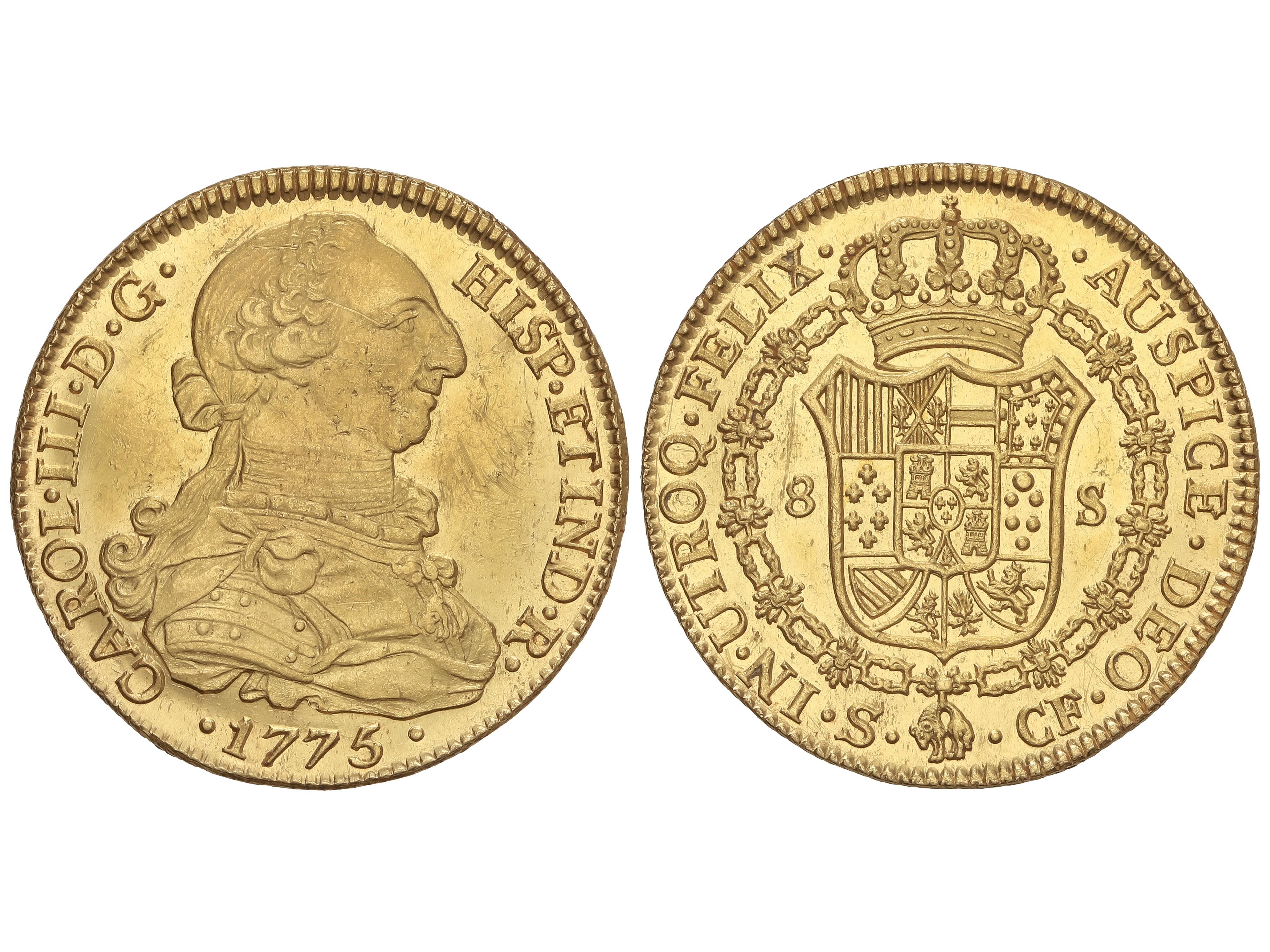 Escudos. 1775. SEVILLA. C.F. 26,99 grs. (Rayitas). Pleno brillo original. RARA Y MÁS ASÍ. AC-2184; XC-959. EBC/EBC+. (Image1)