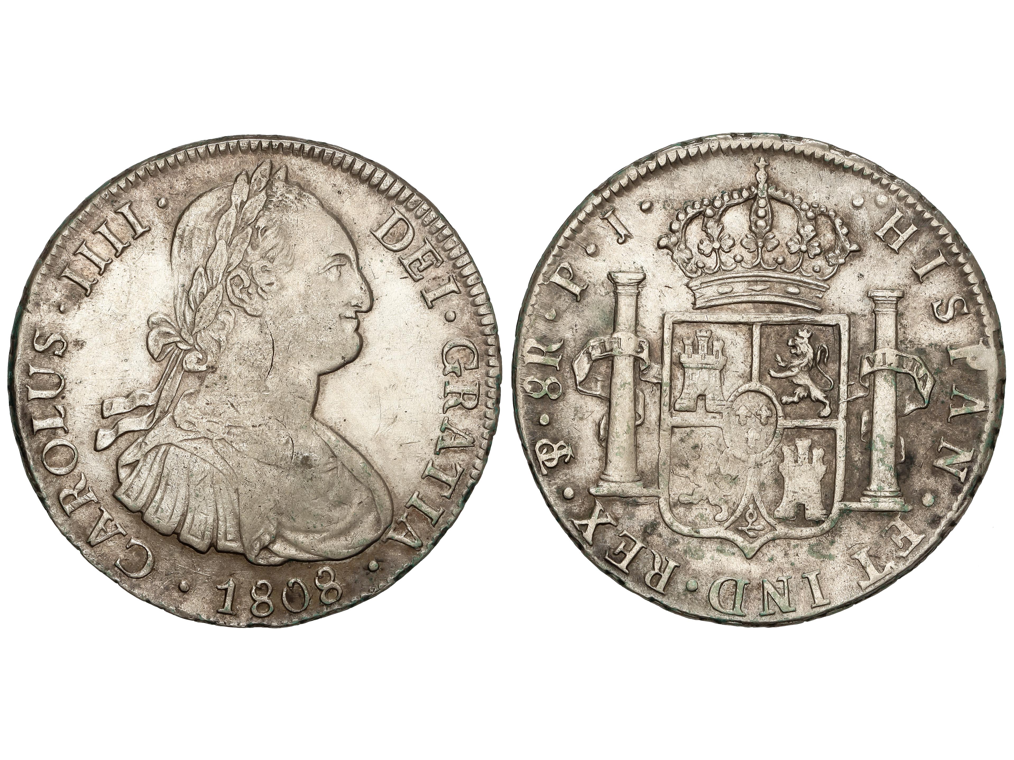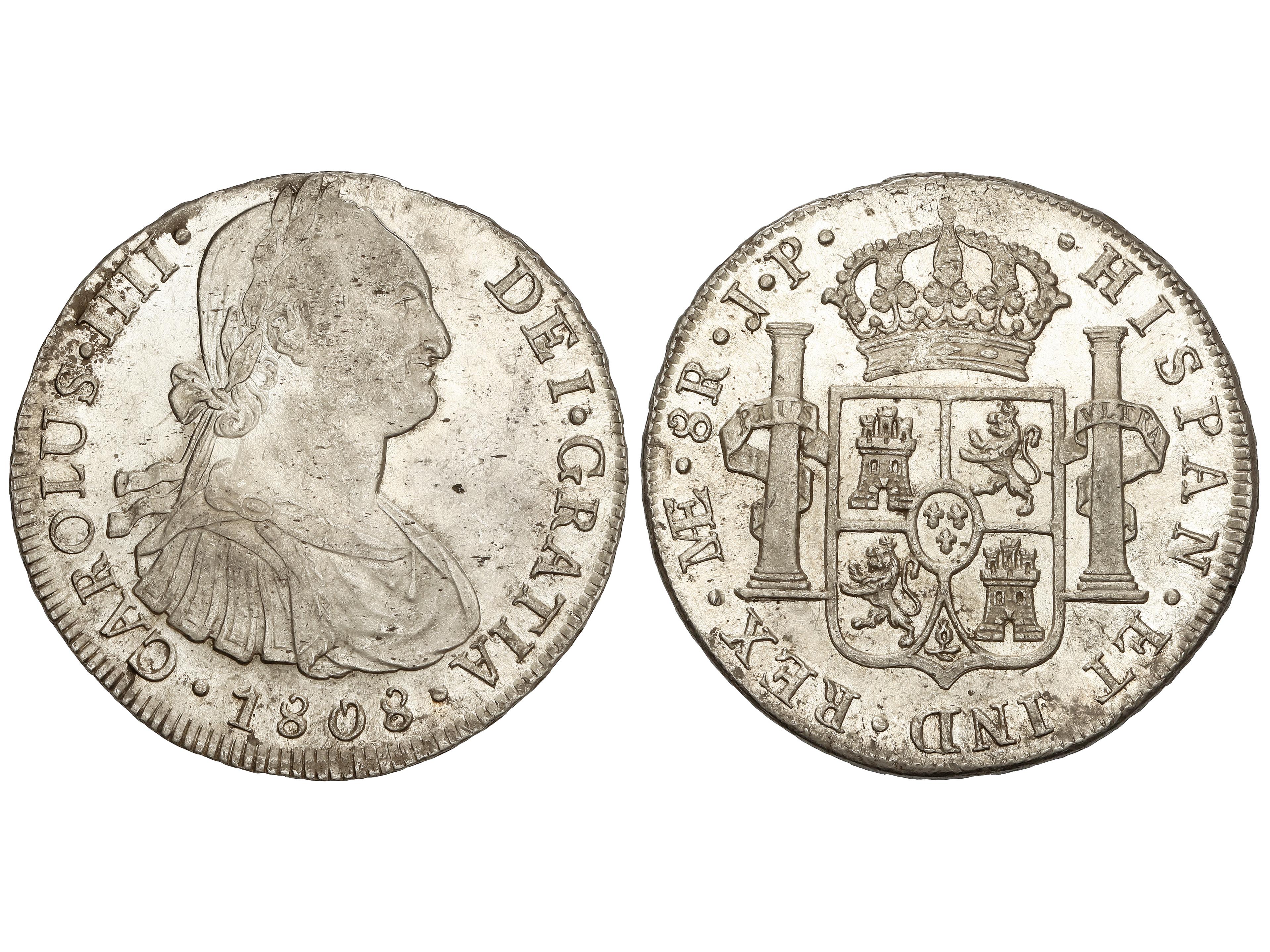 Reales. 1808. LIMA. J.P. 26,03 grs. Acuñación algo floja a las 12h. Pleno brillo original. AC-928. SC-. (Image1)
