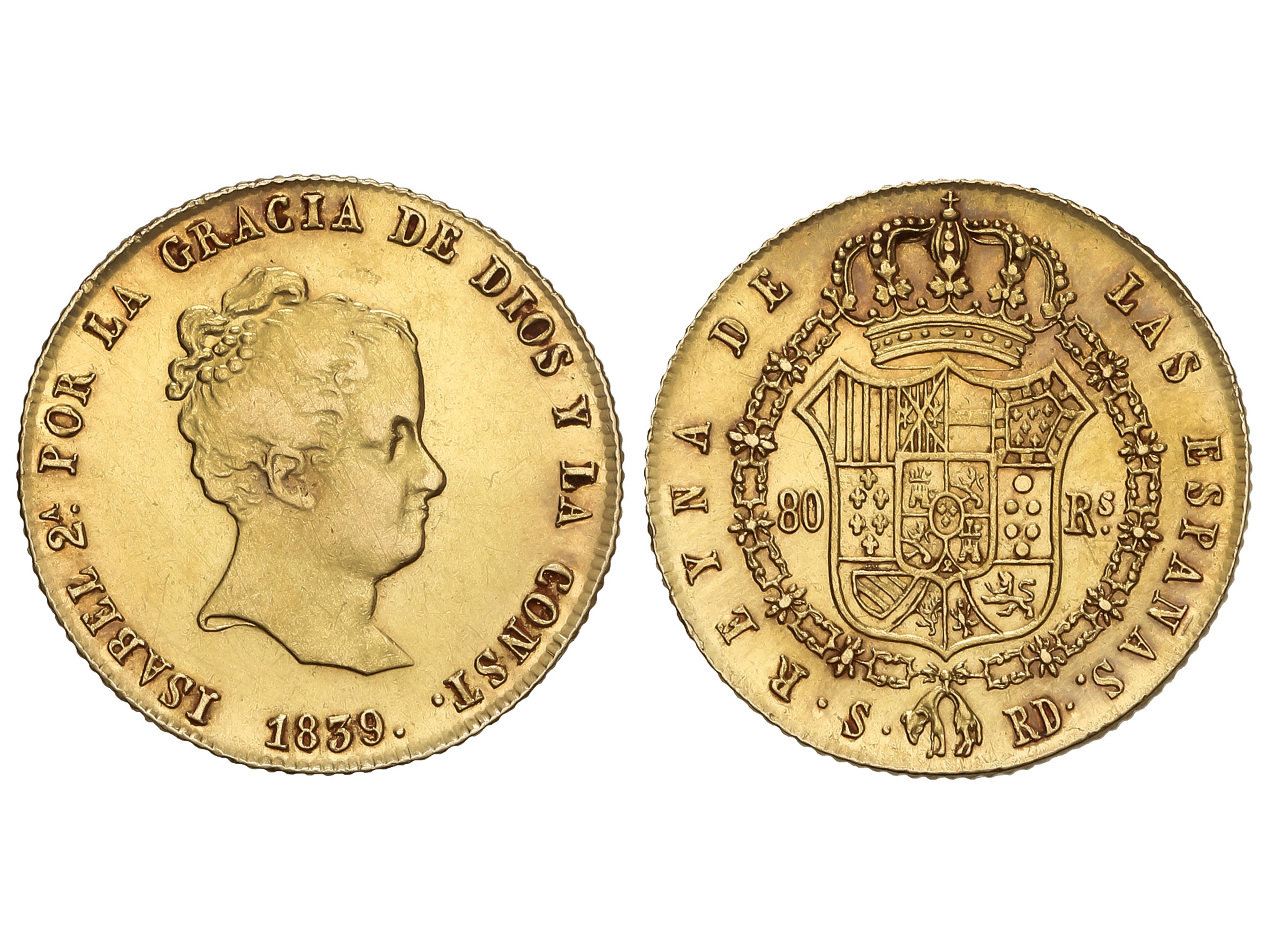 80 Reales. 1839. SEVILLA. R.D. 6,77 grs. Restos de brillo original. AC-743. EBC-. (Image1)