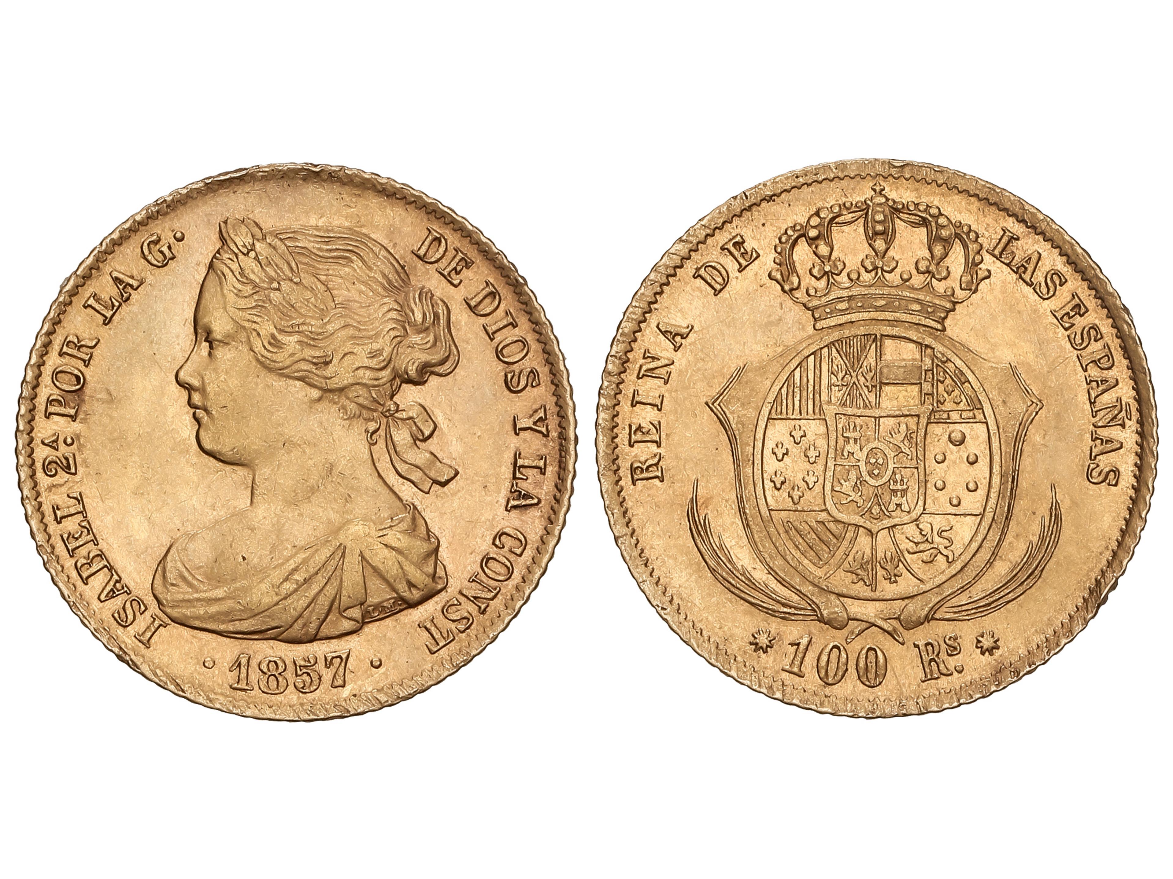 100 Reales. 1857. BARCELONA. 8,34 grs. AC-767. EBC-. (Image1)