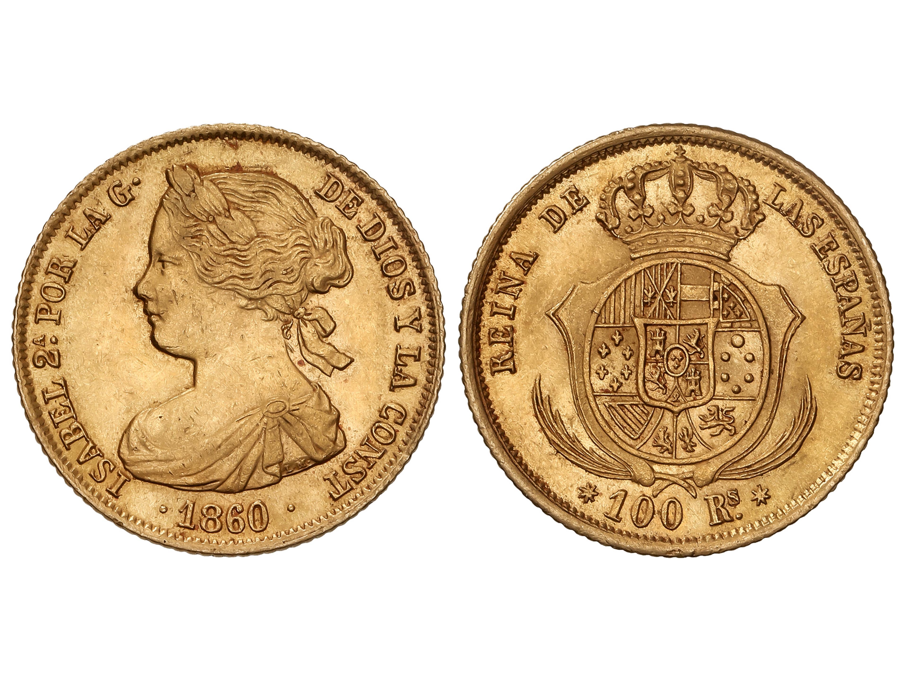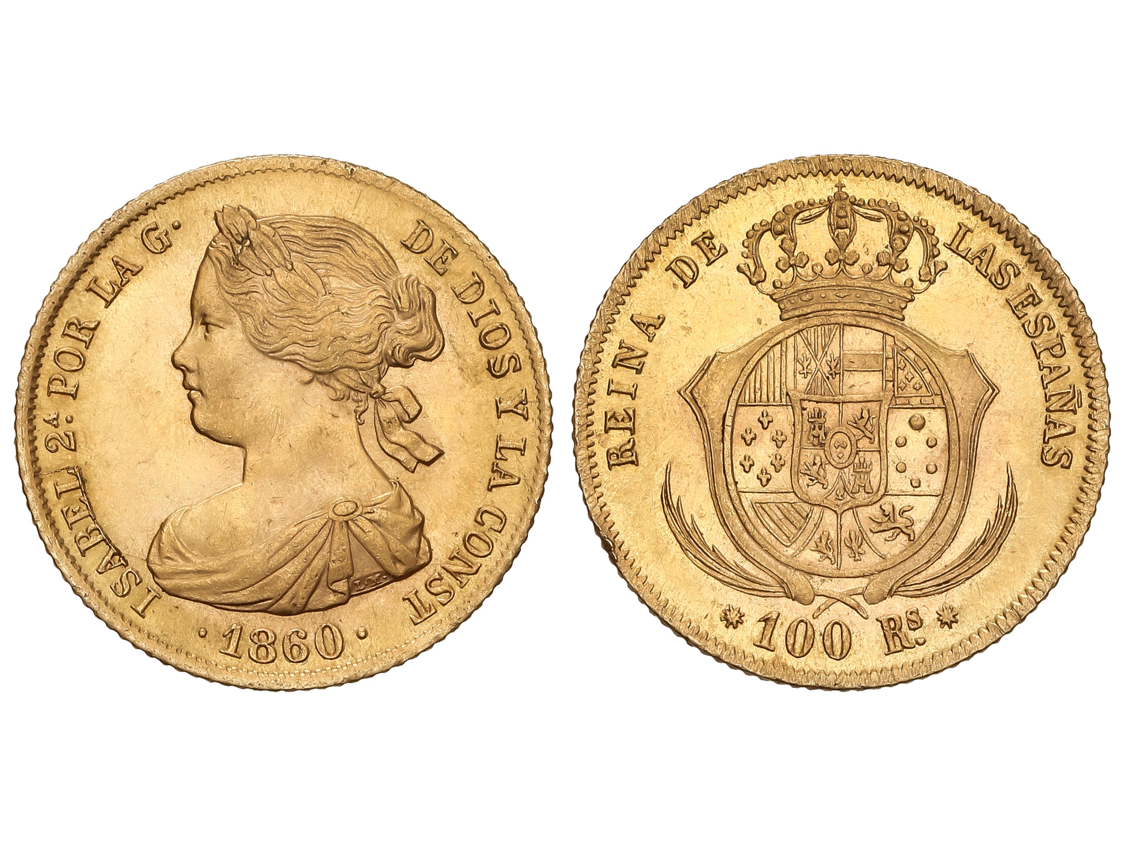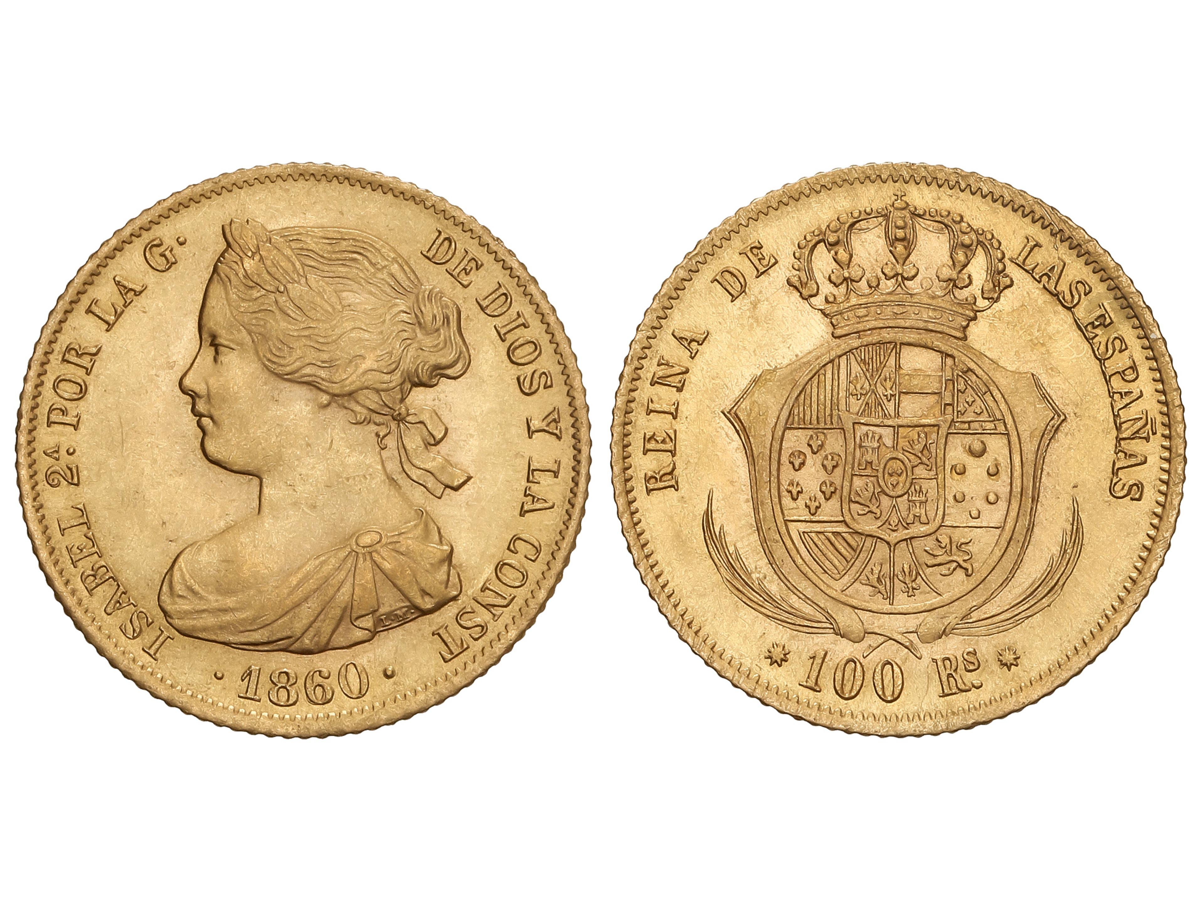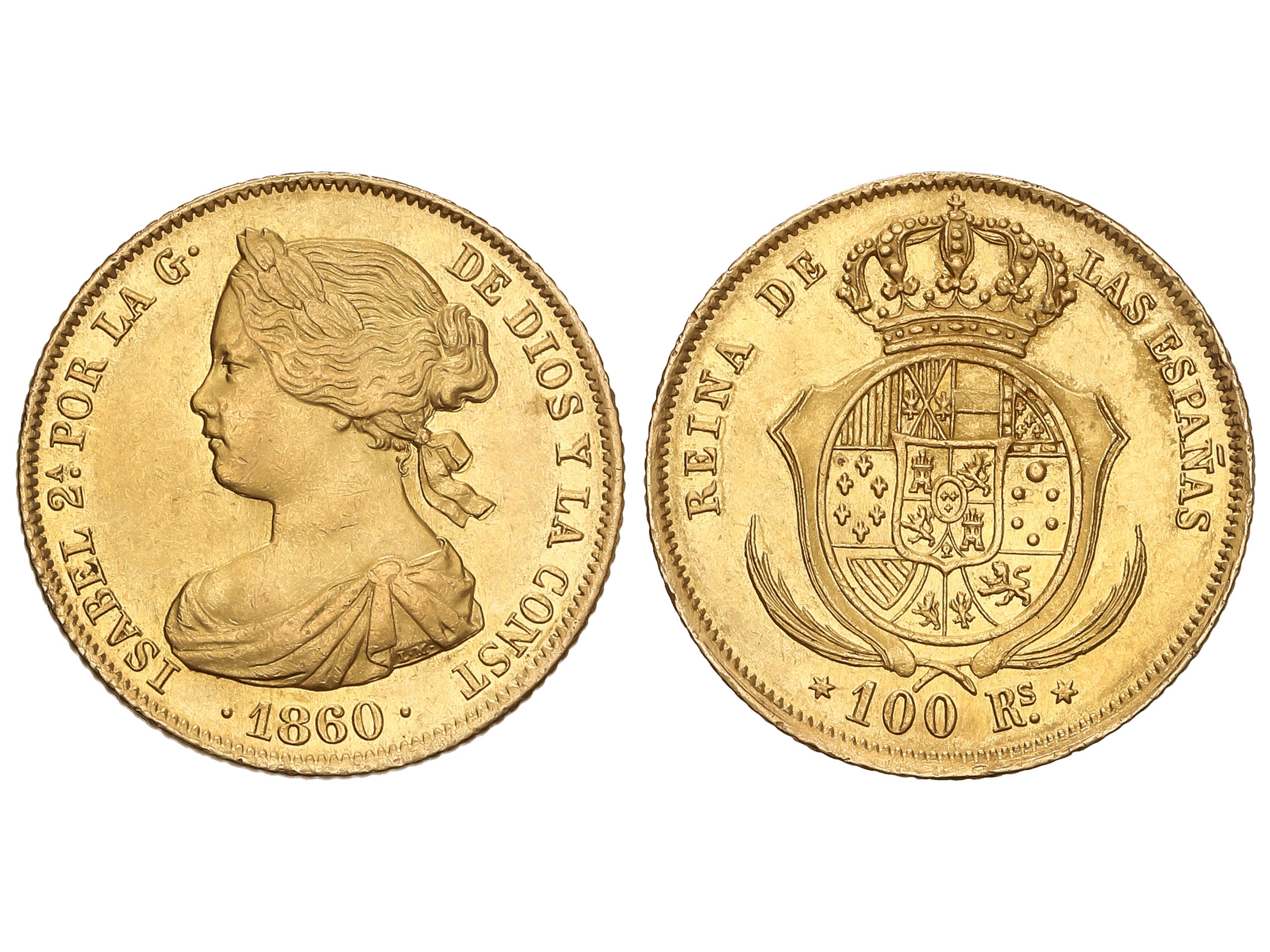 100 Reales. 1860. BARCELONA. 8,36 grs. AC-772. EBC-. (Image1)