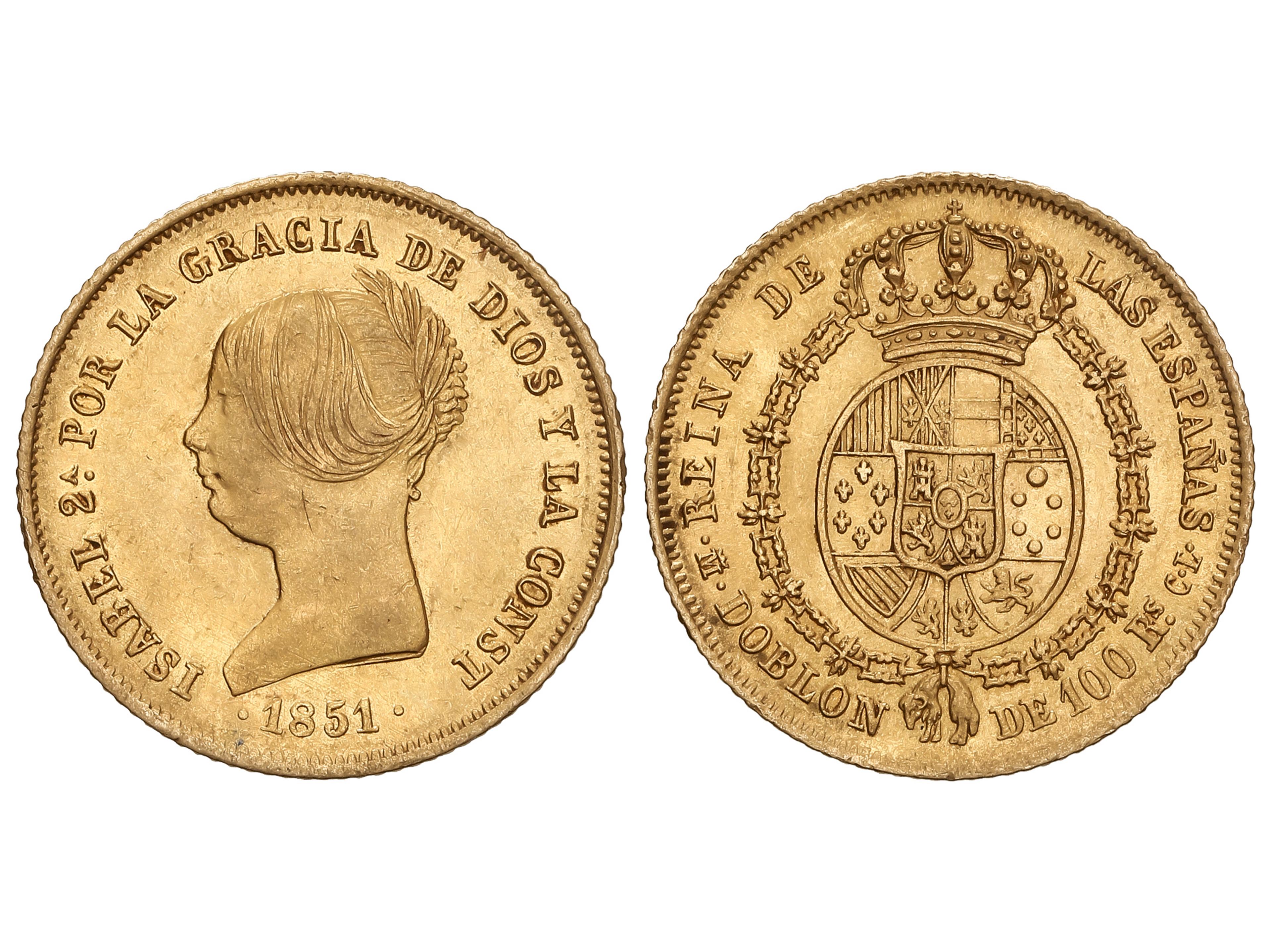Doblón de 100 Reales. 1851. MADRID. C.L. 8,14 grs. ESCASA. AC-758. EBC-. (Image1)