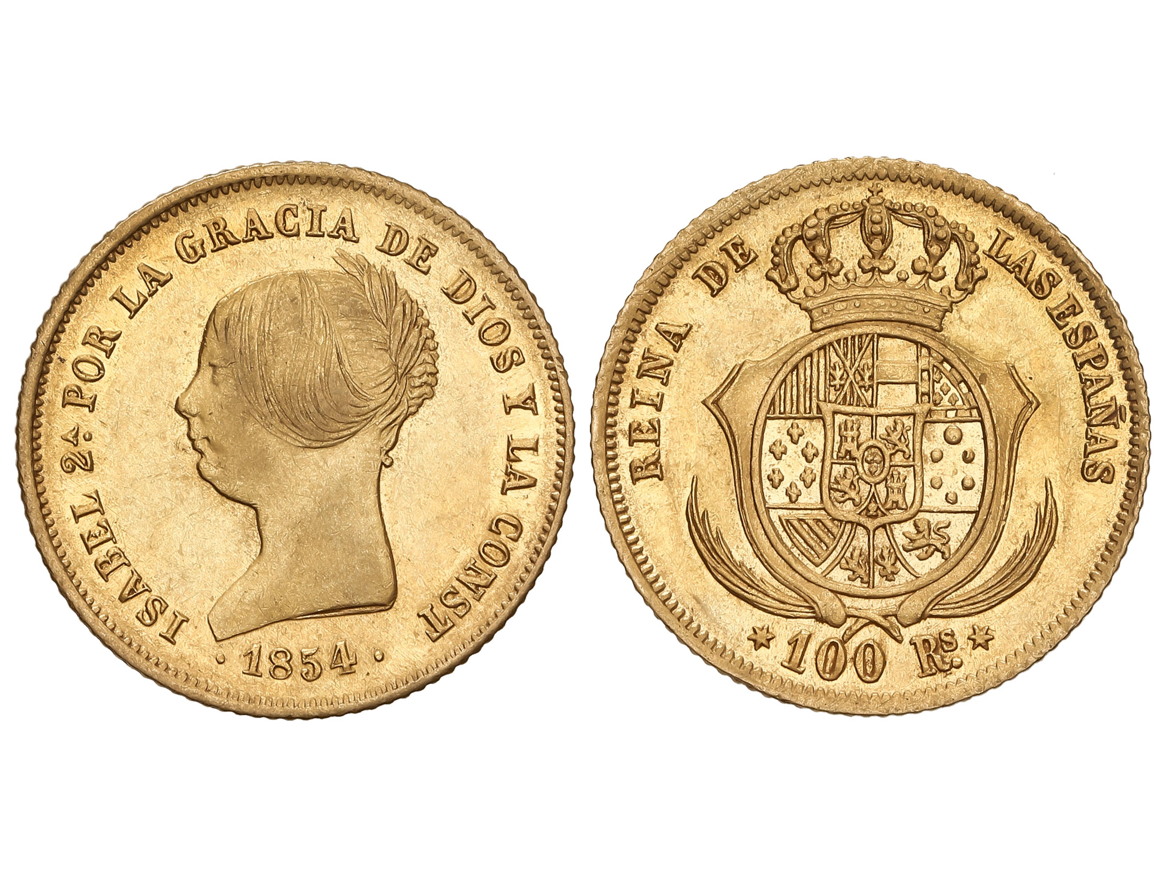 100 Reales. 1854. MADRID. 8,33 grs. (Leves rayitas en anverso). Restos de brillo. AC-779. EBC-/EBC. (Image1)