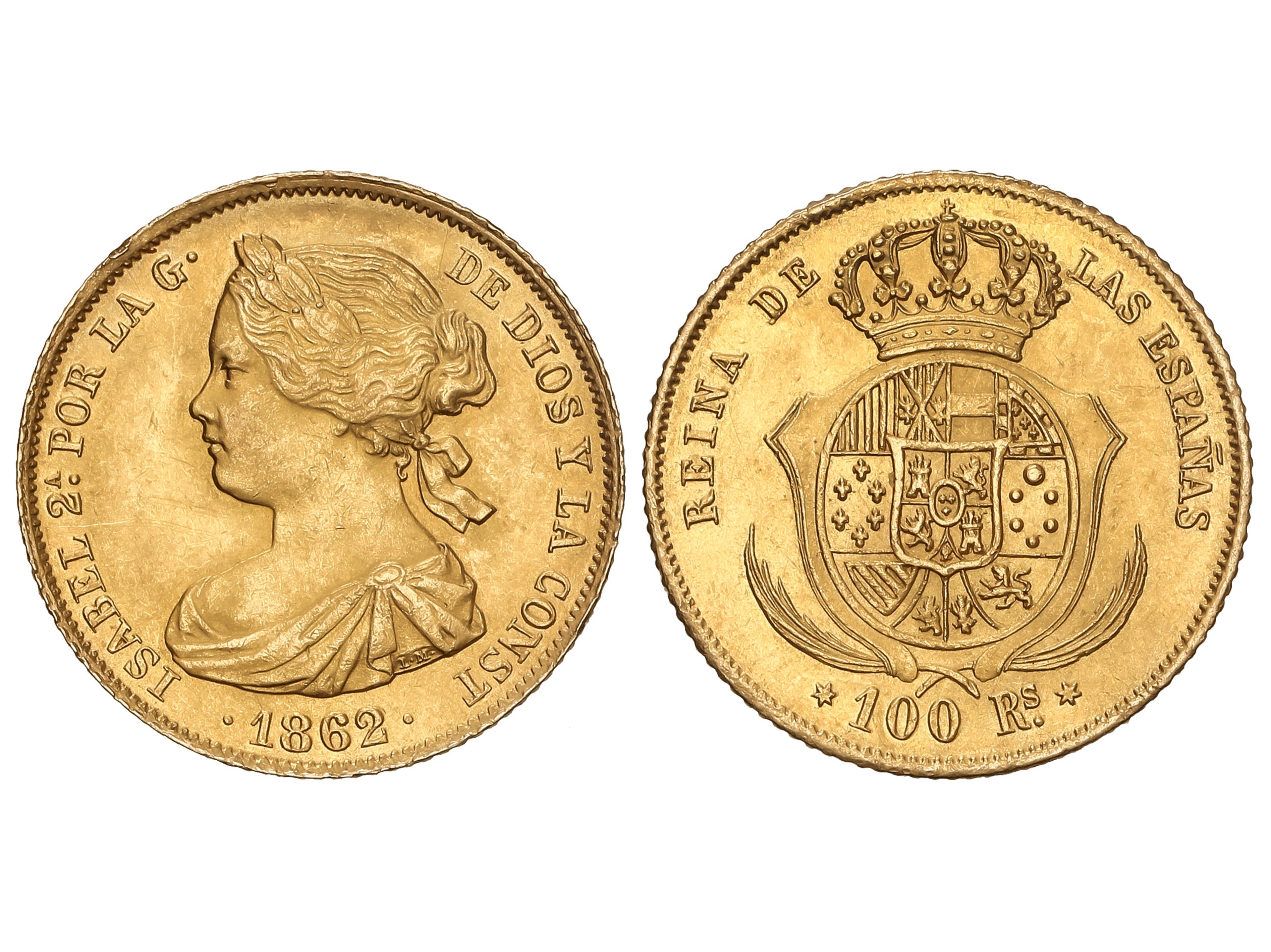 100 Reales. 1862. BARCELONA. 8,32 grs. AC-775. EBC-. (Image1)
