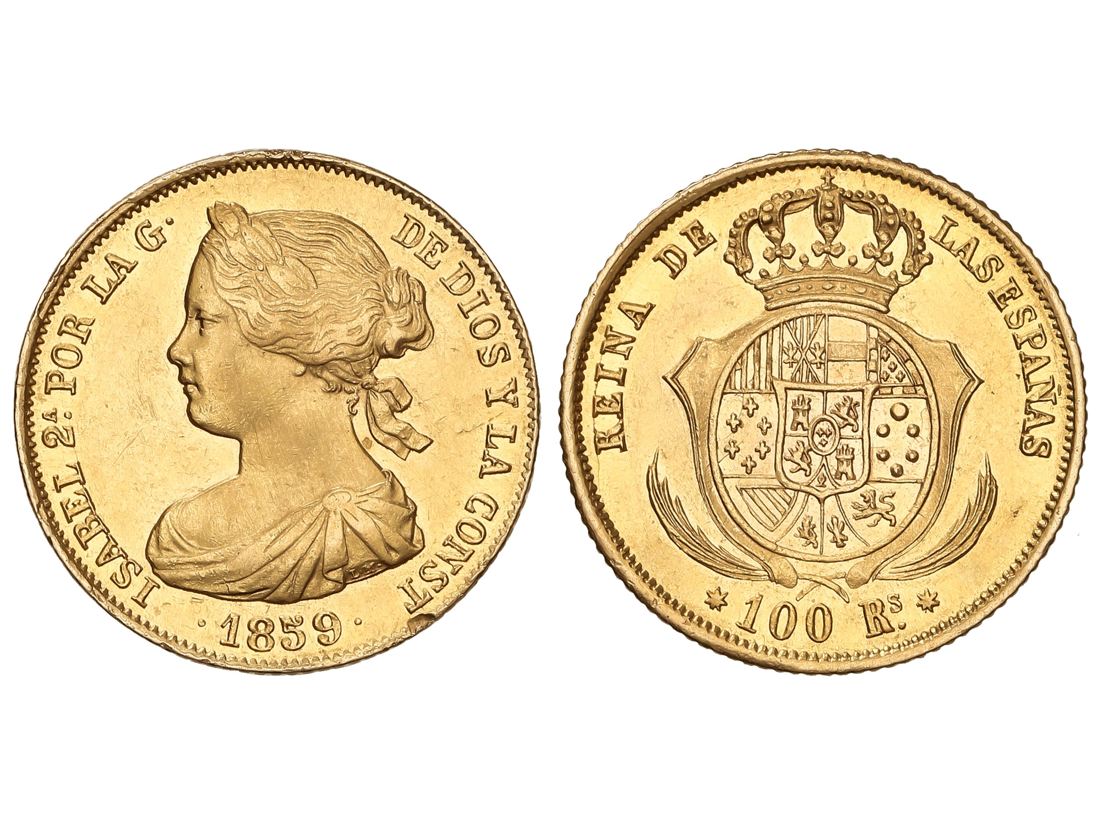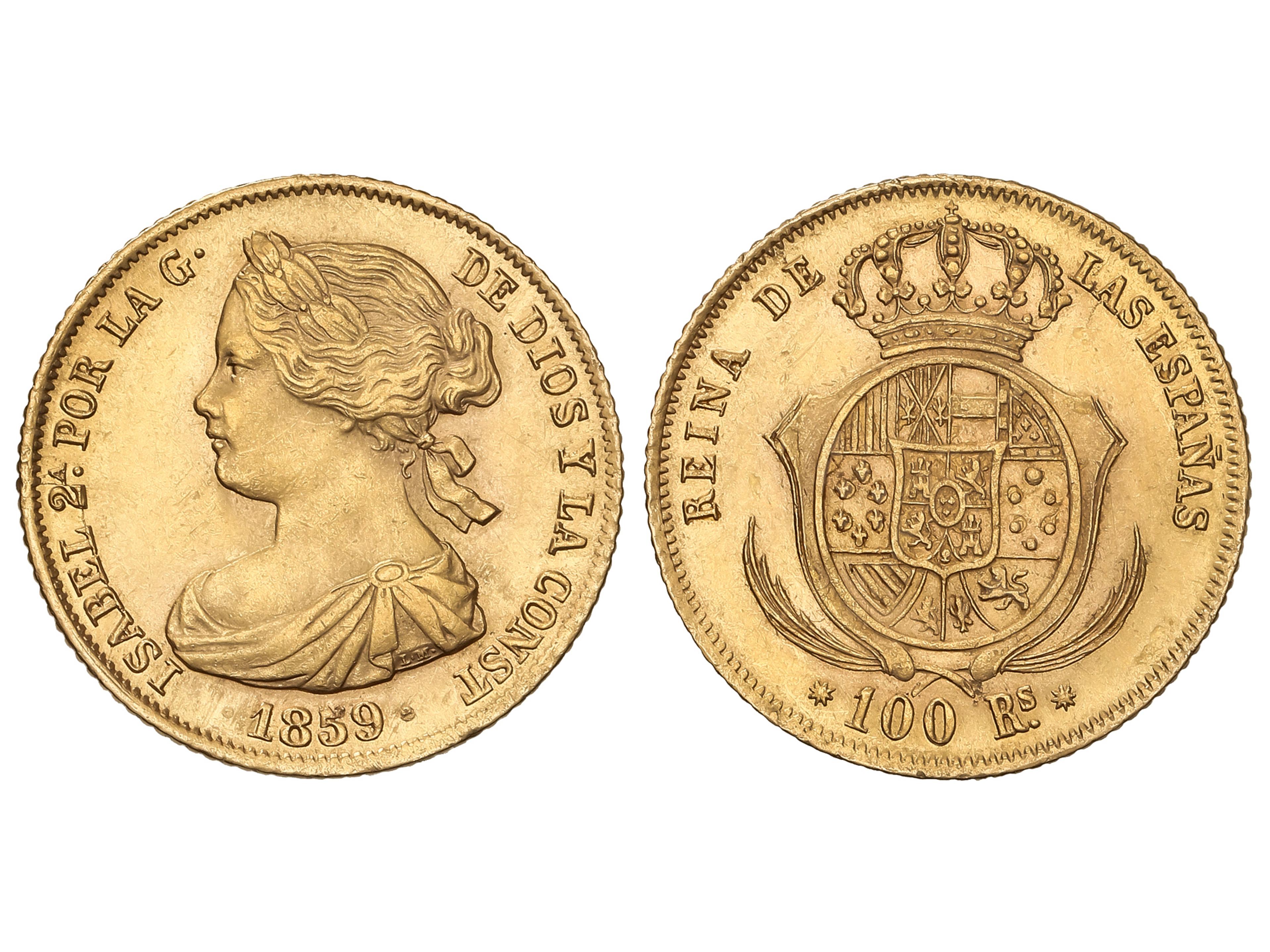 100 Reales. 1859. BARCELONA. 8,32 grs. AC-770. EBC. (Image1)