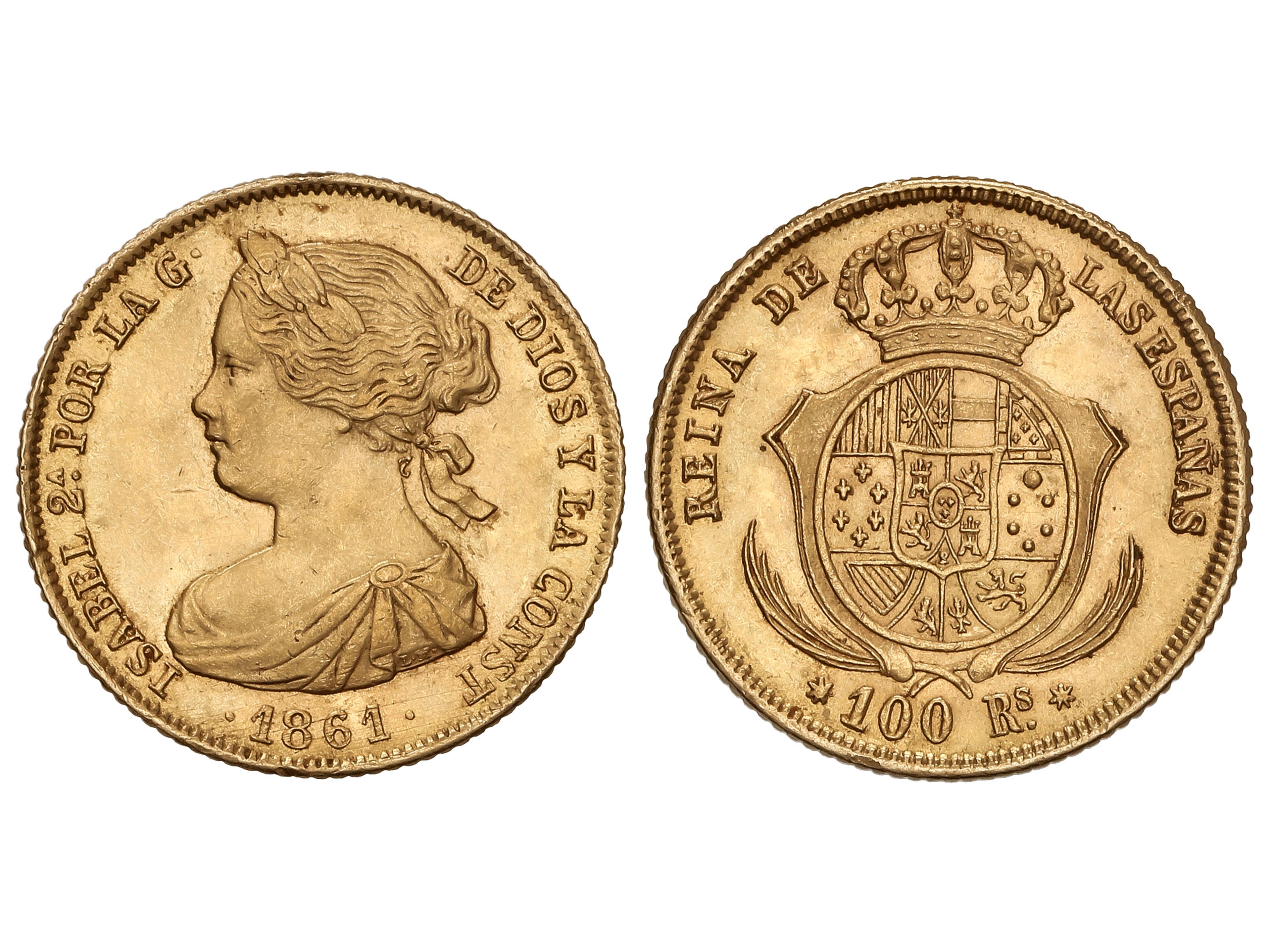 100 Reales. 1861. SEVILLA. 8,39 grs. AC-804. EBC-. (Image1)