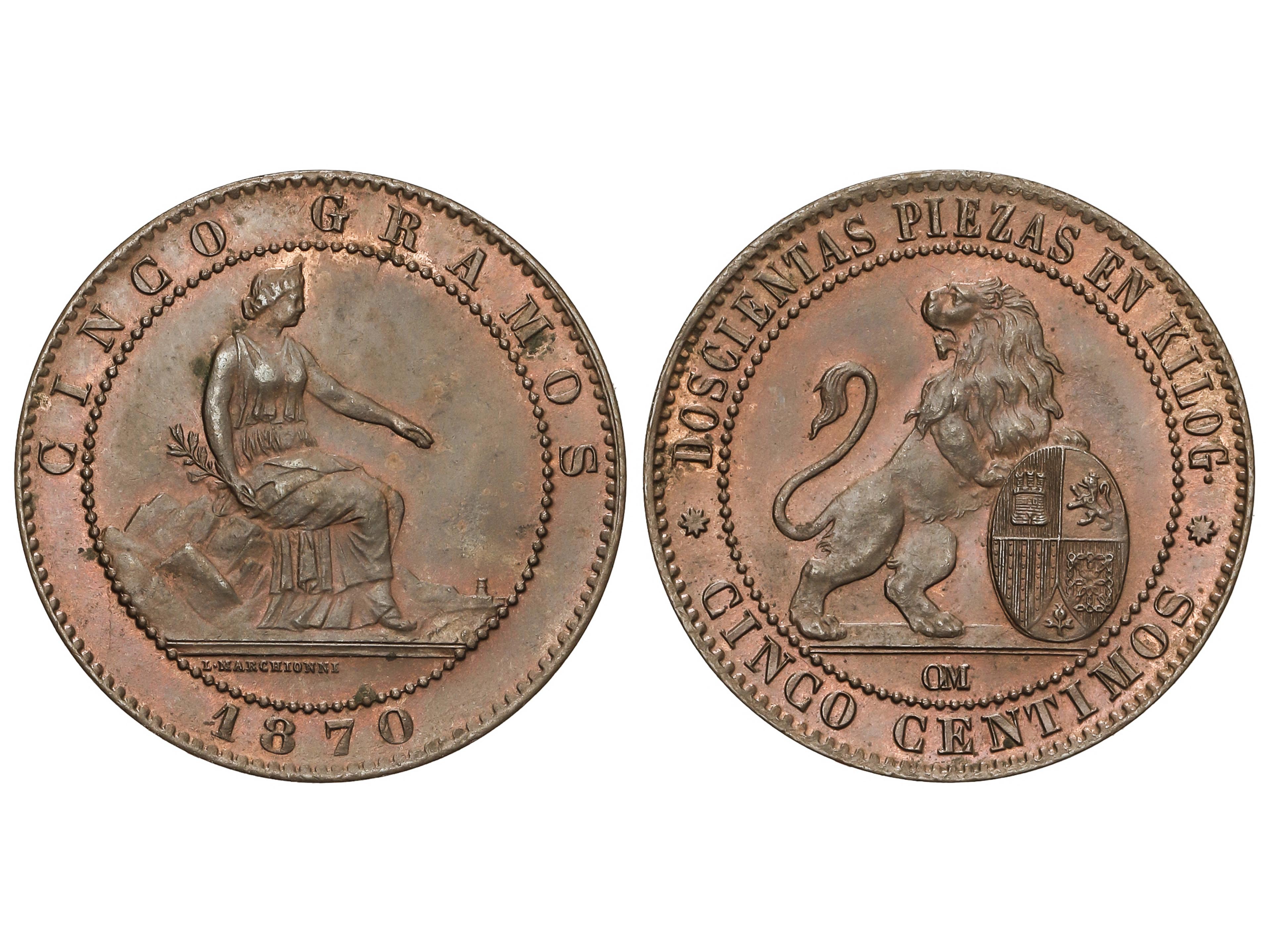 389 image5 Céntimos. 1870. BARCELONA. O.M. Ligera pátina y brillo original. AC-5. SC-. (Image1)