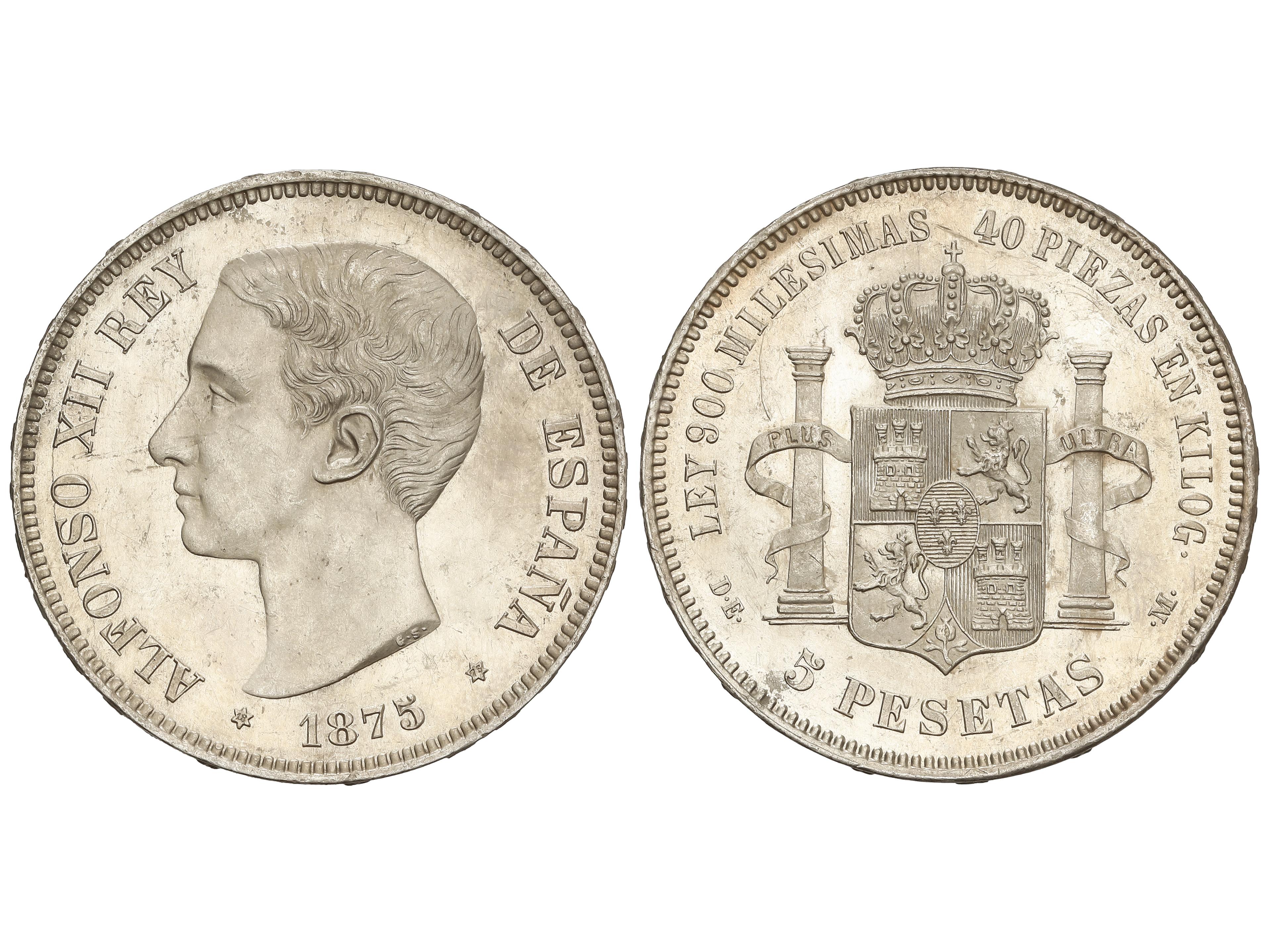 395 image5 Pesetas. 1875 (*18-75). D.E.-M. (Leves golpecitos). AC-35. EBC. (Image1)