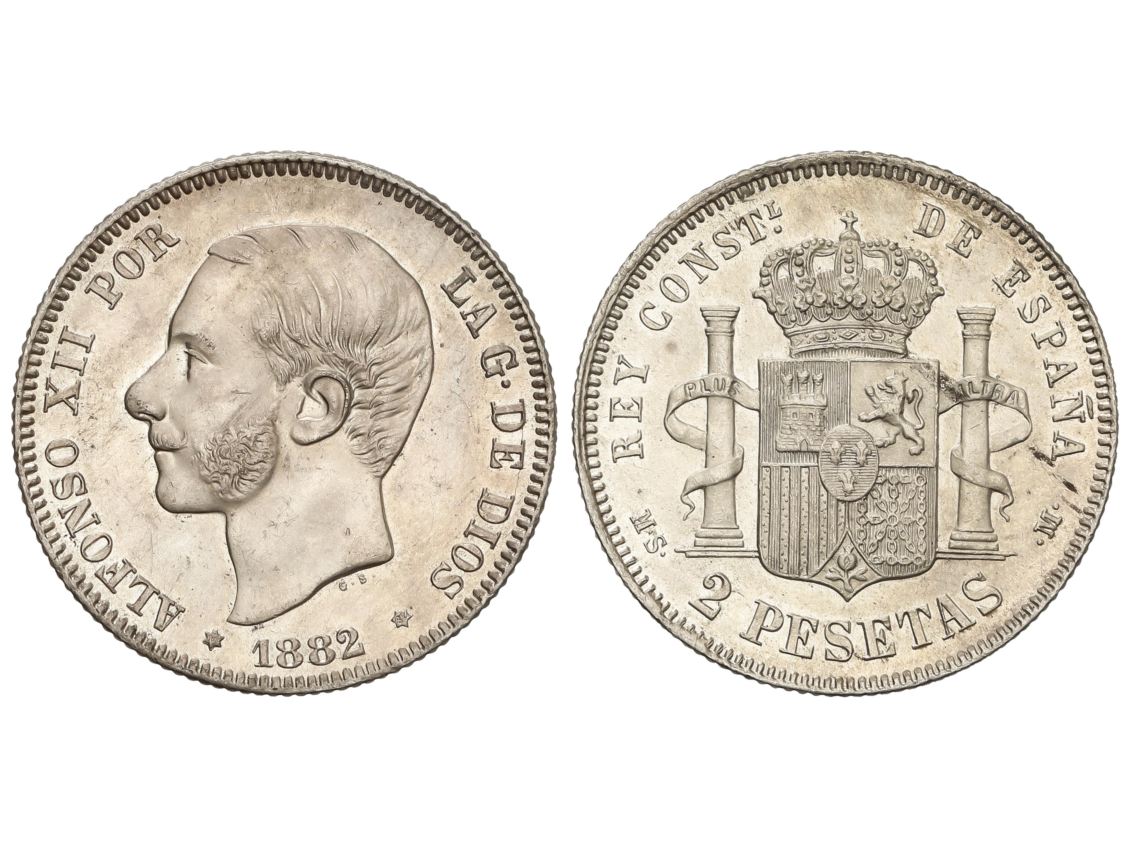 393 image2 Pesetas. 1882 (*18-82). M.S.-M. Brillo original. BONITA PIEZA. AC-32. EBC+. (Image1)