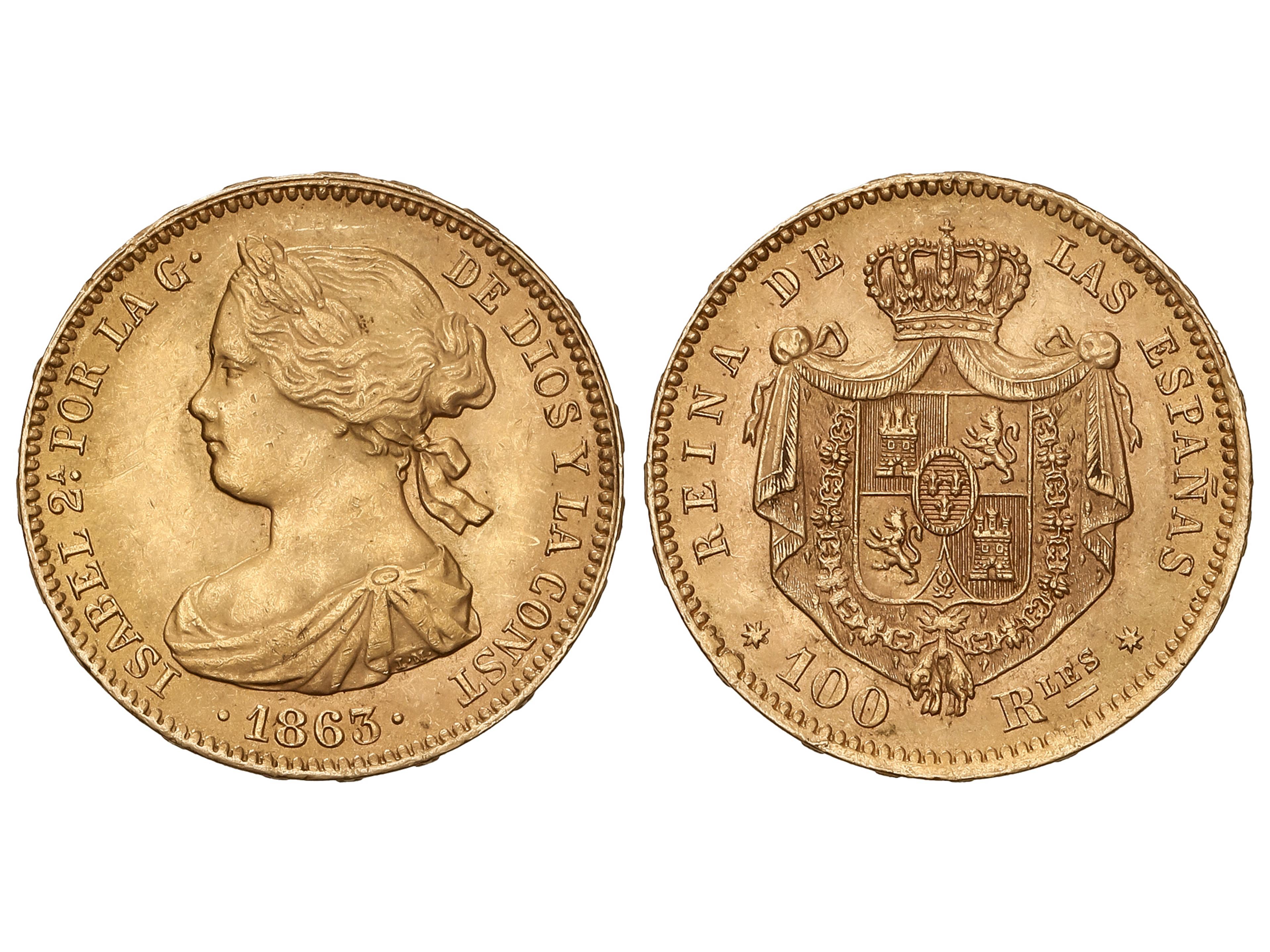 382 image100 Reales. 1863. SEVILLA. 8,38 grs. (Leves rayitas en anverso). AC-806. EBC-/EBC. (Image1)