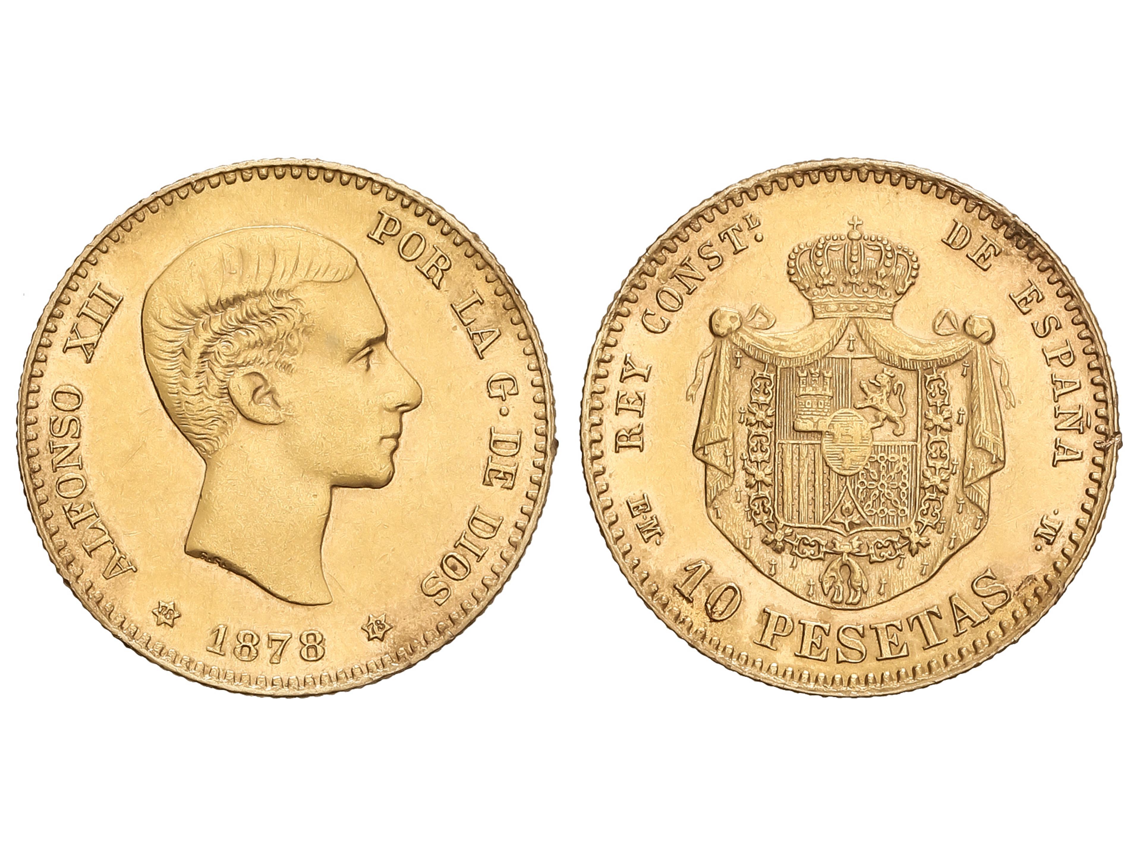 396 image10 Pesetas. 1878 (*18-78). E.M-M. 3,21 grs. AU (900). AC-65. MBC+. (Image1)