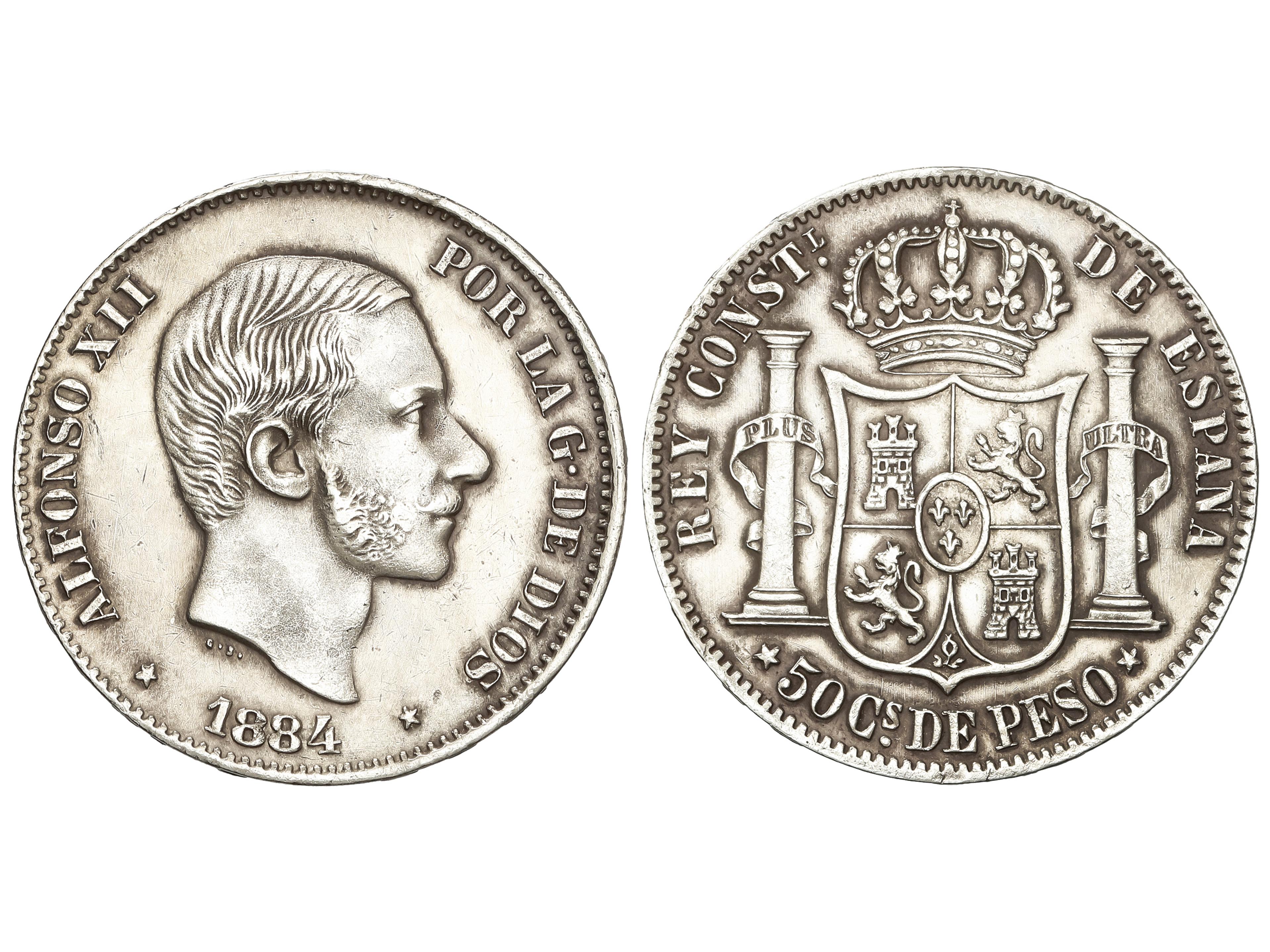 394 image50 Centavos de Peso. 1884. MANILA. (Limpiada). ESCASA. (EBC). (Image1)