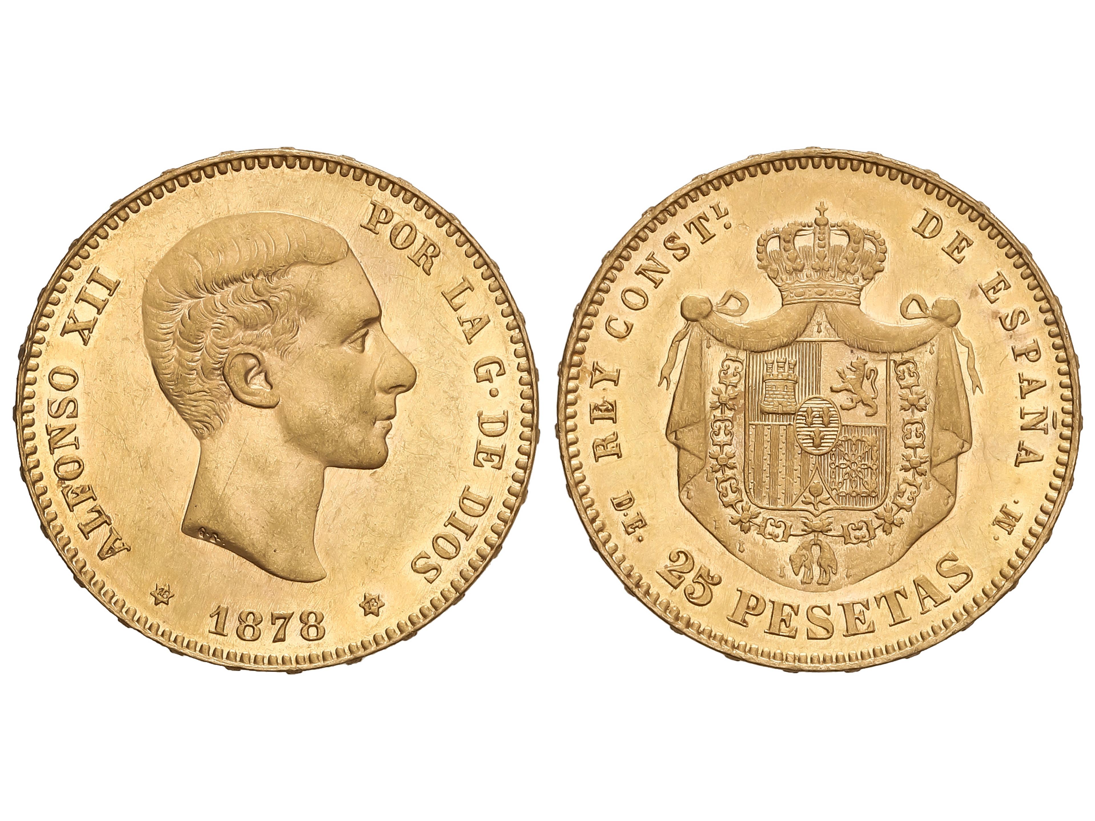 398 image25 Pesetas. 1878 (*18-78). D.E.-M. 8,02 grs. AU (900). Restos de brillo original. AC-70. EBC. (Image1)