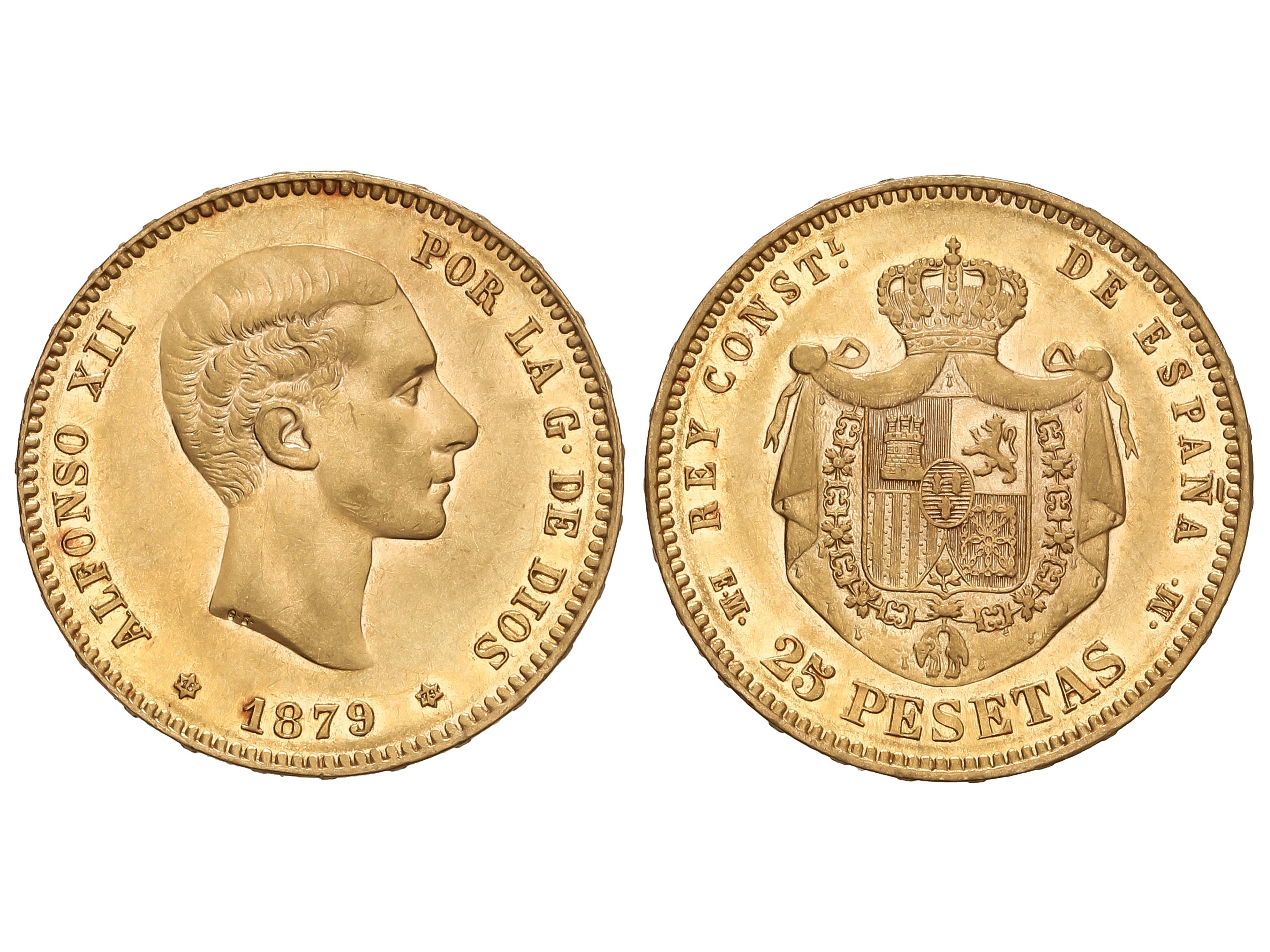 399 image25 Pesetas. 1879 (*18-79). E.M.-M. 8,03 grs. AU (900). Restos de brillo. AC-74. EBC. (Image1)