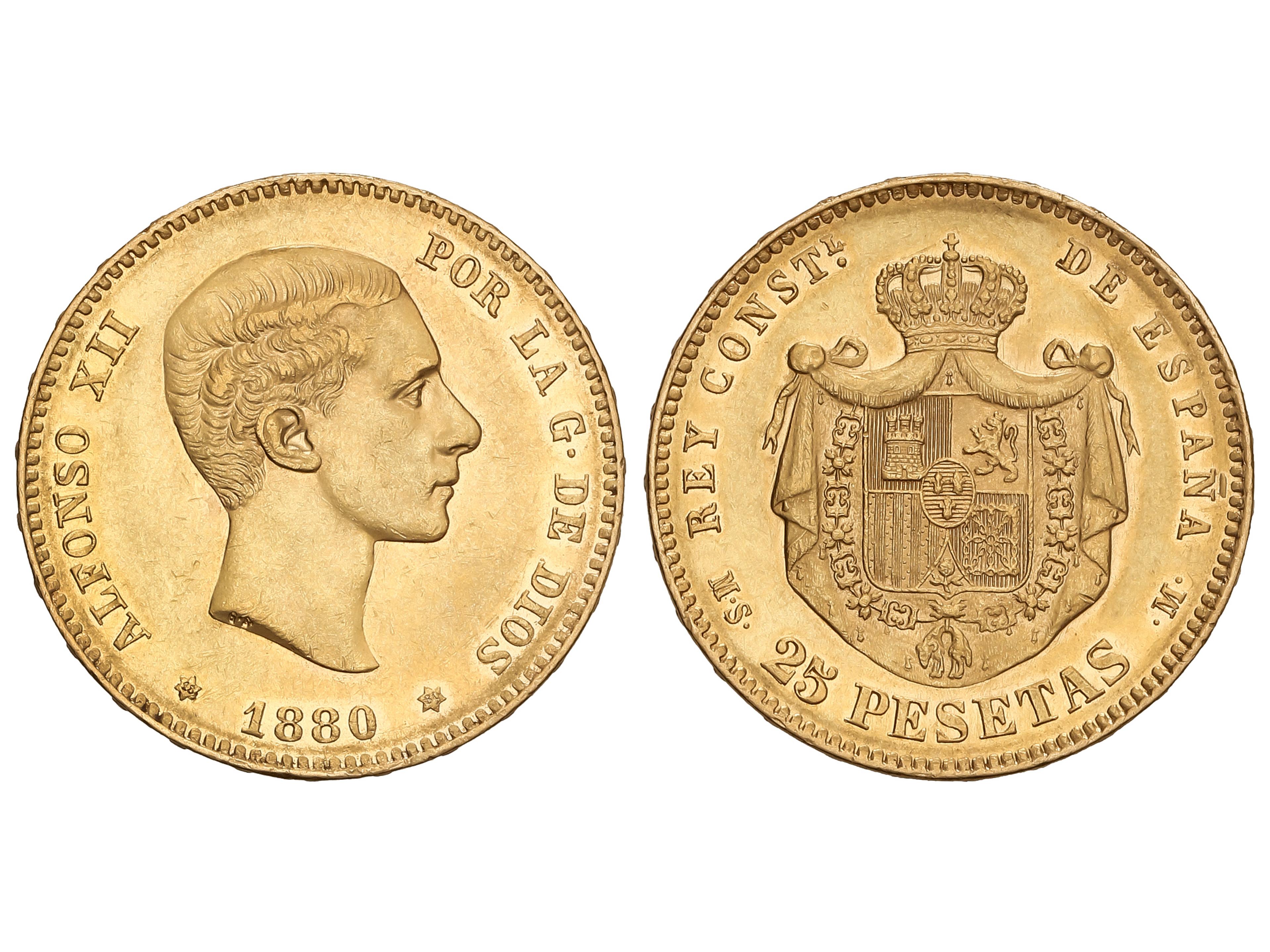 400 image25 Pesetas. 1880 (*18-80). M.S.-M. 8,03 grs. AU (900). AC-79. EBC-/EBC. (Image1)