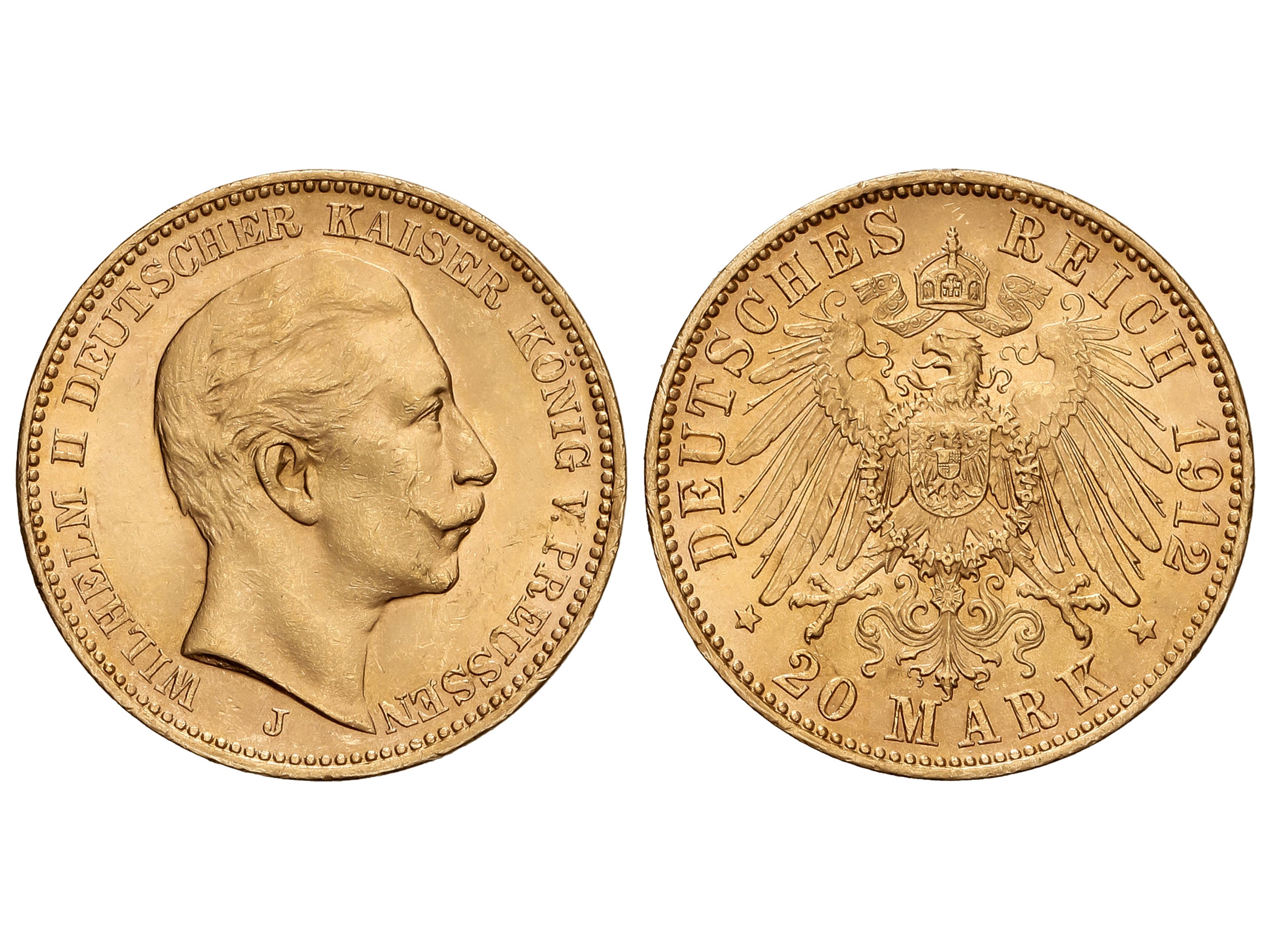 20 Mark. 1912-J. WILHELM II. PRUSSIA (Hamburg). 7,96 grs. AU (900). (Leves golpecitos en anverso). Fr-3931; KM-521. MBC+/EBC-. (Image1)