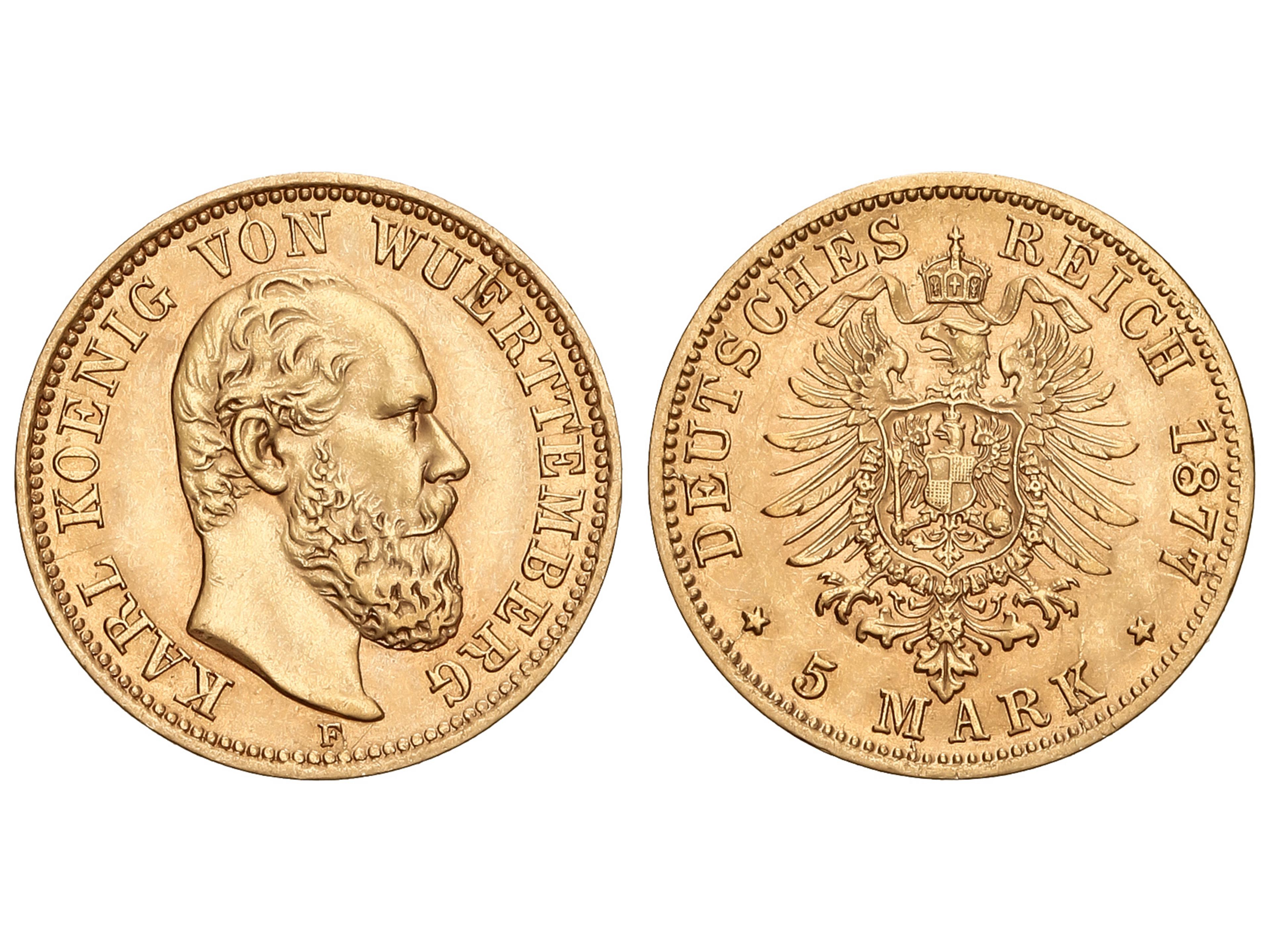 Mark. 1877-F. KARL I. WURTTEMBERG. 1,99 grs. AU (900). Fr-3875; KM-627. EBC. (Image1)