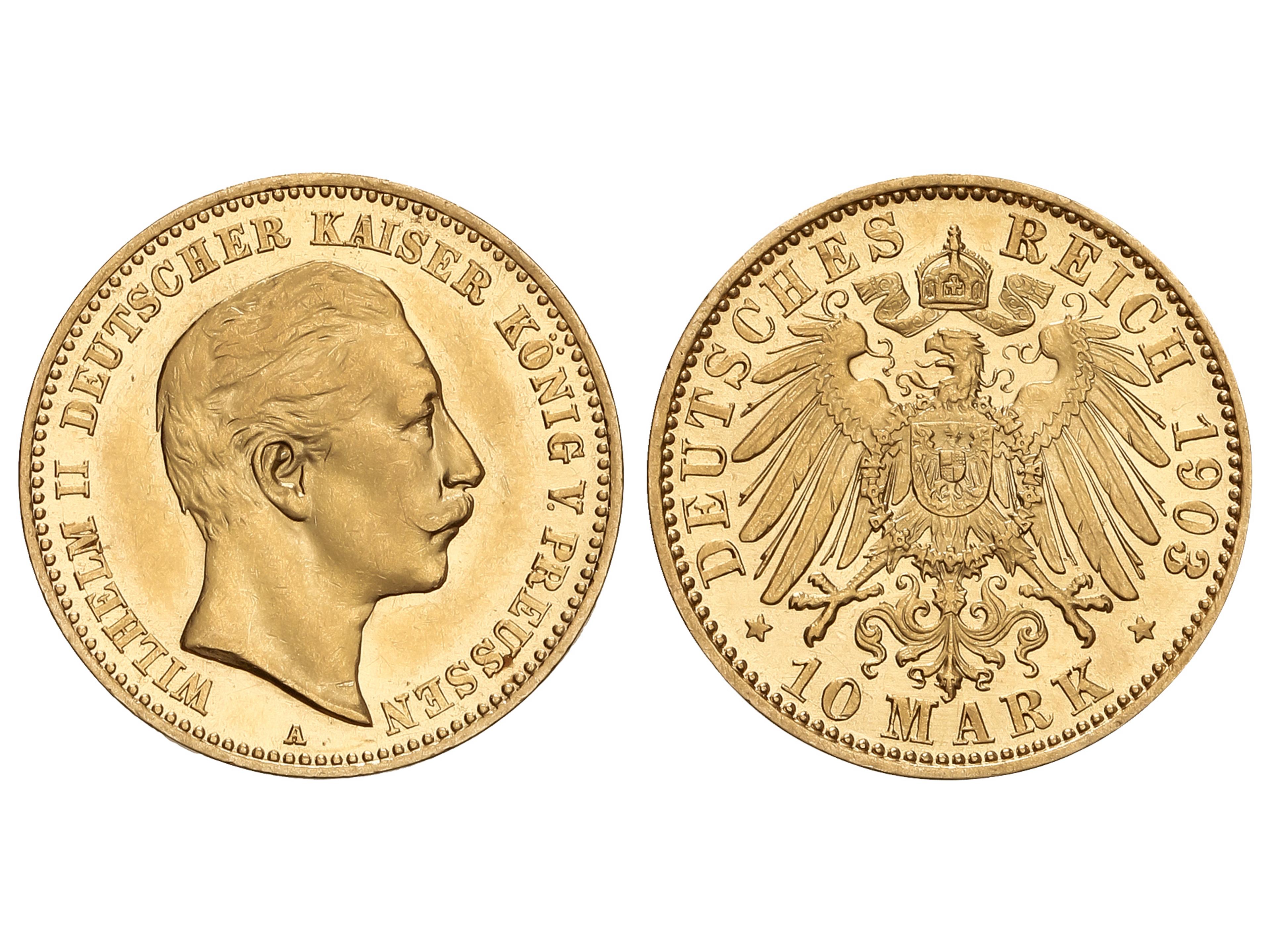 10 Mark. 1903-A. WILHELM II. PRUSSIA. 3,98 grs. AU (900). Brillo original. Fr-3835; KM-520. EBC/EBC+. (Image1)