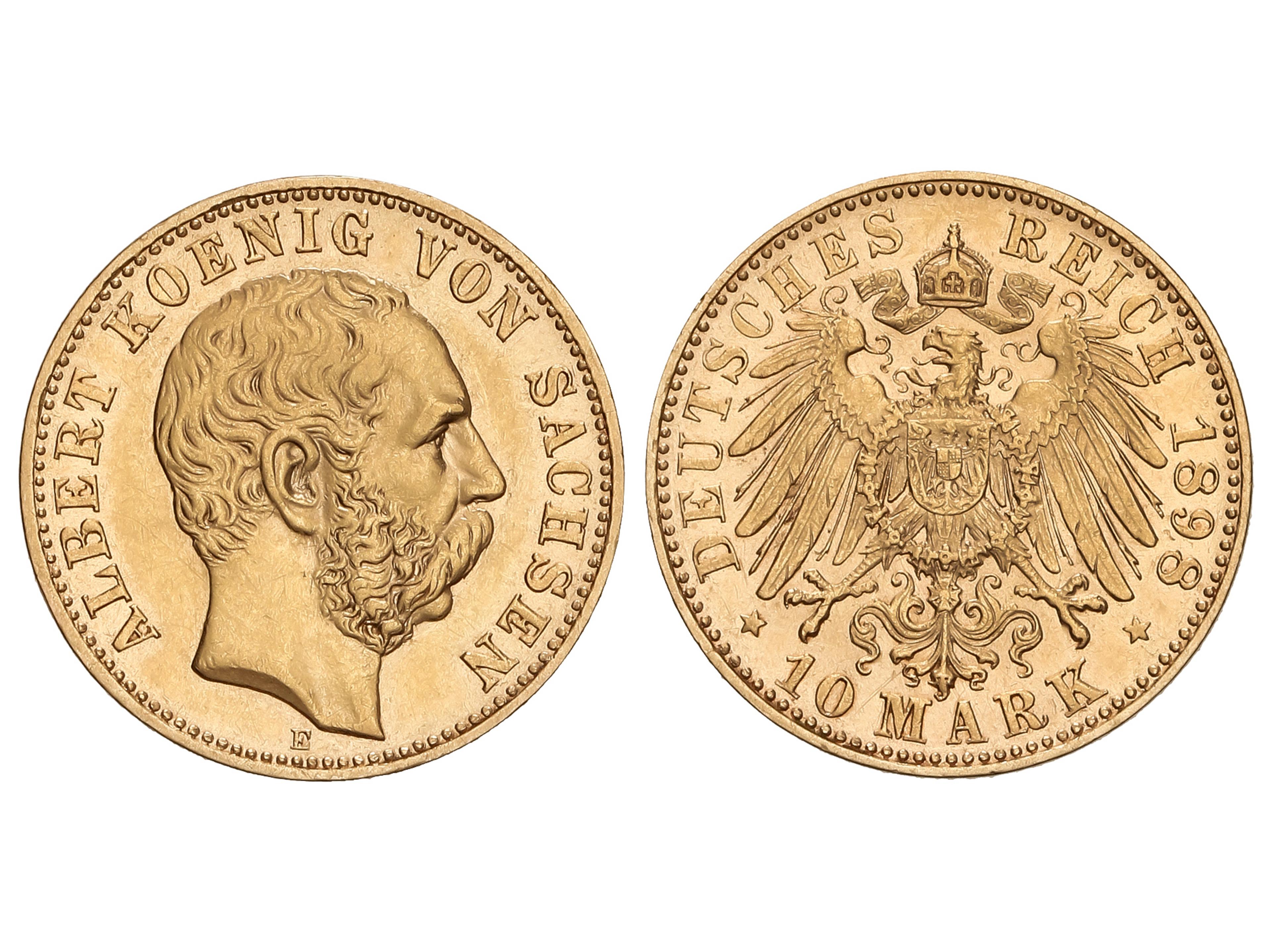 10 Mark. 1898-E. ALBERT I. SAXONY. 3,96 grs. AU (900). Restos de brillo original. Fr-3844; KM-1247. EBC. (Image1)
