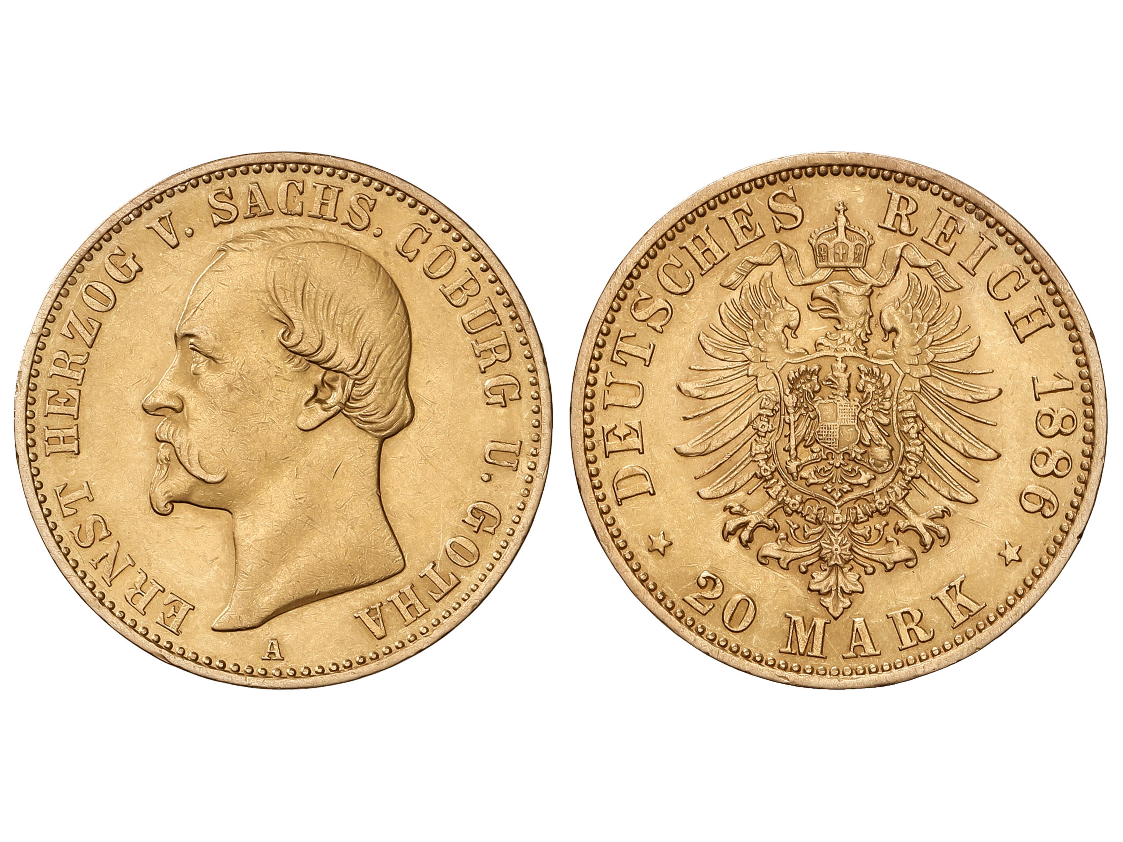 20 Mark. 1886-A. ERNST II. SACHSEN (Saxe-Coburg-Gotha). 7,91 grs. AU (900). (Pequeñas marquitas). RARA. Fr-3852; KM-148a. (EBC-). (Image1)