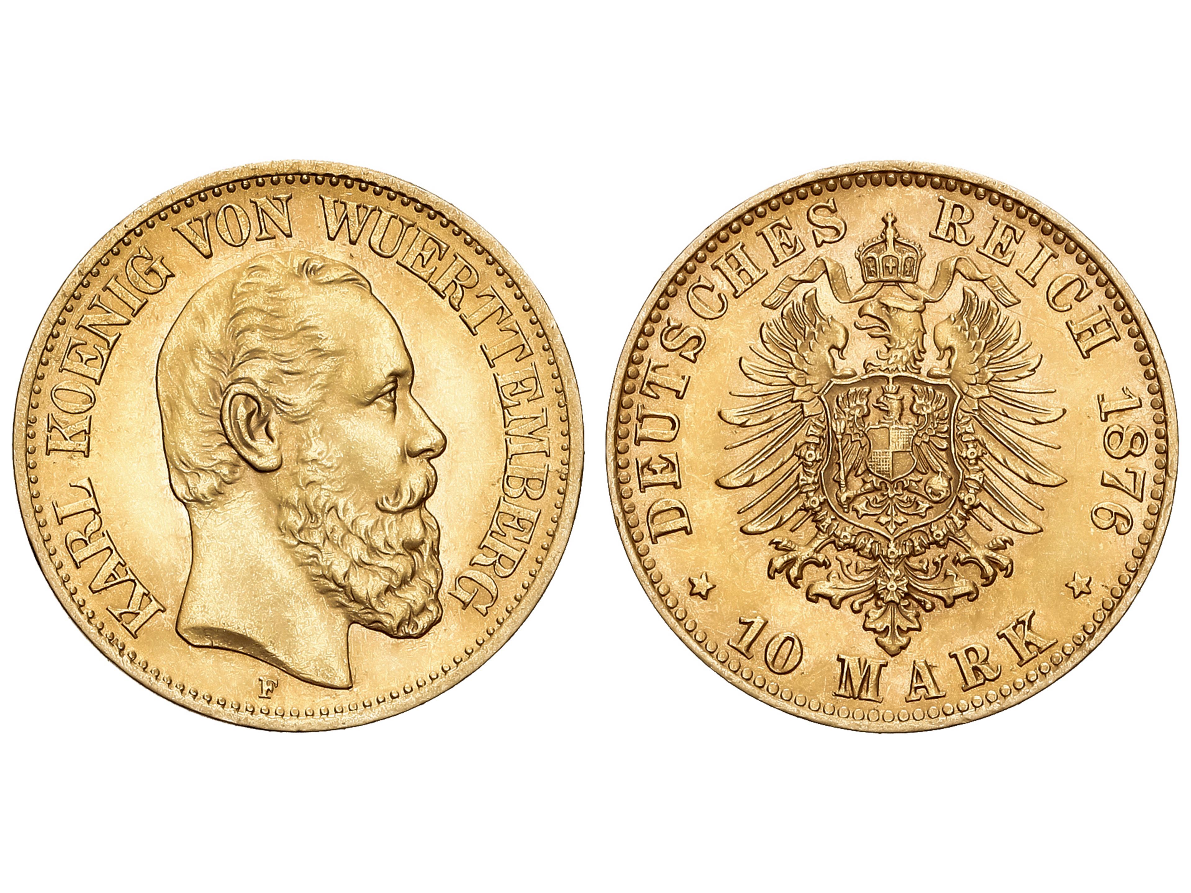 10 Mark. 1876-F. KARL I. WURTTEMBERG. 3,98 grs. AU (900). Fr-3873; KM-624. EBC. (Image1)