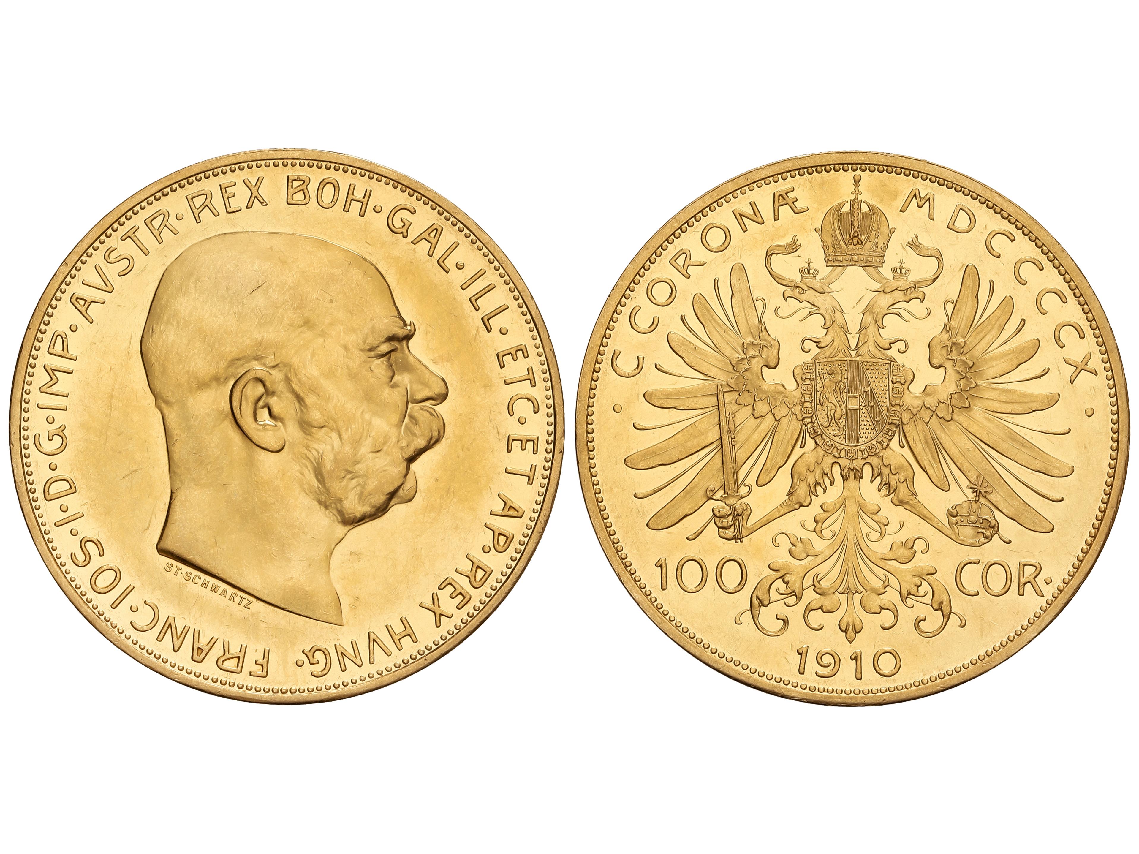 457 image100 Corona. 1910. FRANZ JOSEPH I. 33,85 grs. AU (900). Acuñación de época. Original Strike. (Leves golpecitos). Brillo original. Fr-507; KM-2819. Tirada: 3.074 piezas. EBC/EBC+. (Image1)