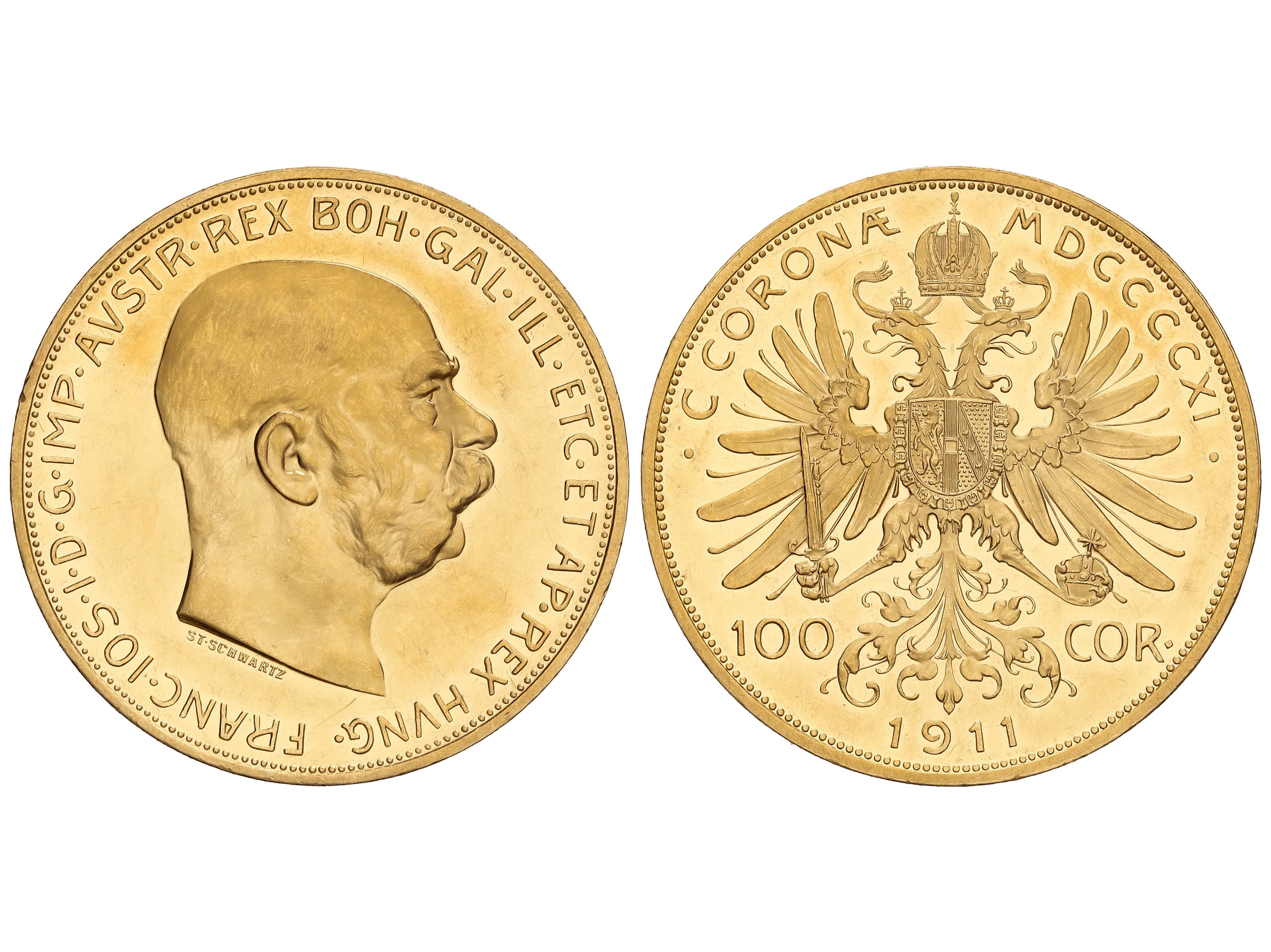 458 image100 Corona. 1911. FRANZ JOSEPH I. 33,85 grs. AU (900). Acuñación de época. Original Strike. (Leves rayitas). Brillo original tipo PROOF. Fr-507; KM-2819. Tirada: 11.165 piezas. EBC+/SC-. (Image1)
