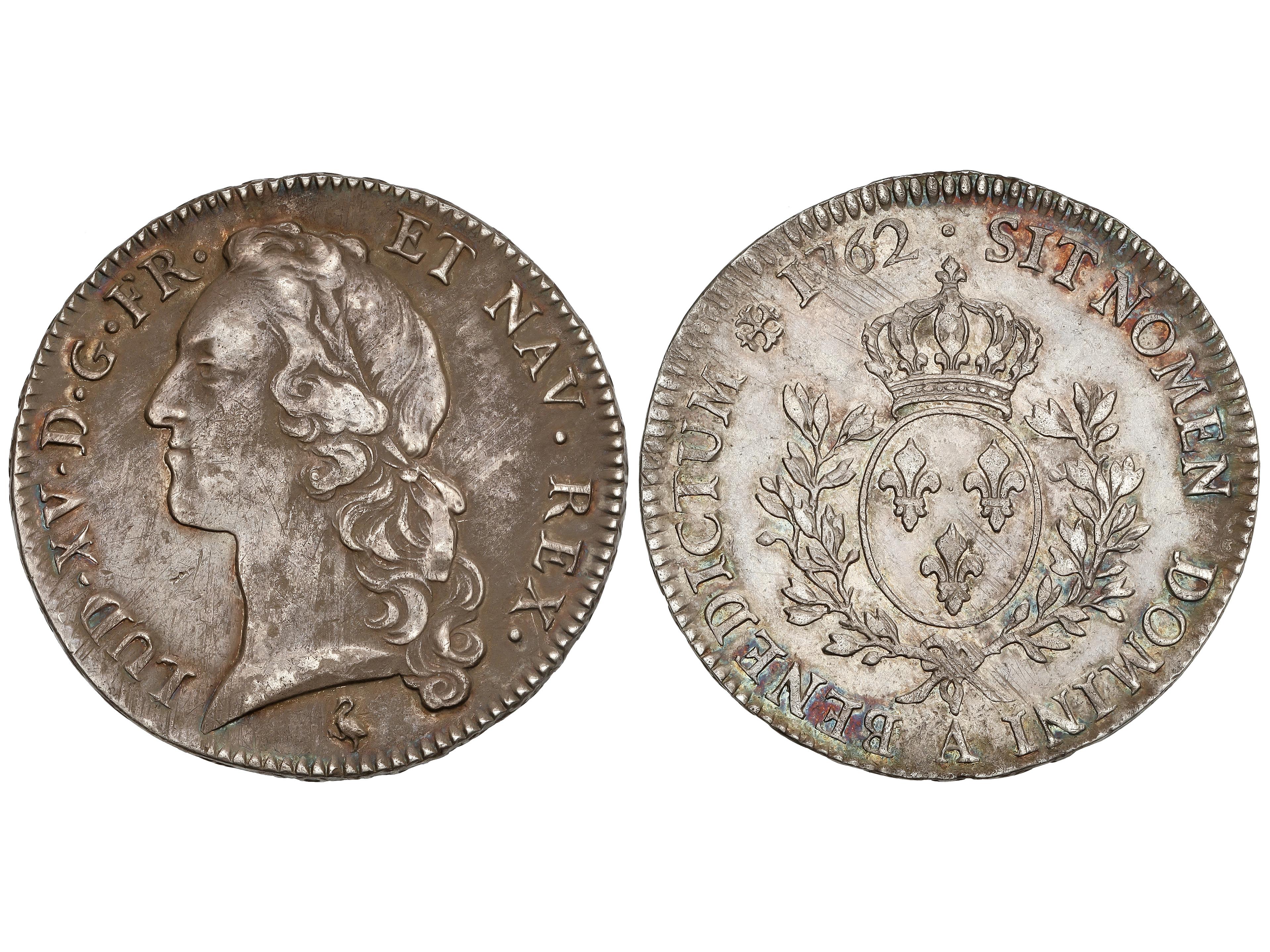 Ecu. 1762-A. LOUIS XV. PARIS. 28,85 grs. AR. Rayitas de ajuste. Pátina oscura. ESCASA ASÍ. KM-512.1. MBC+.
