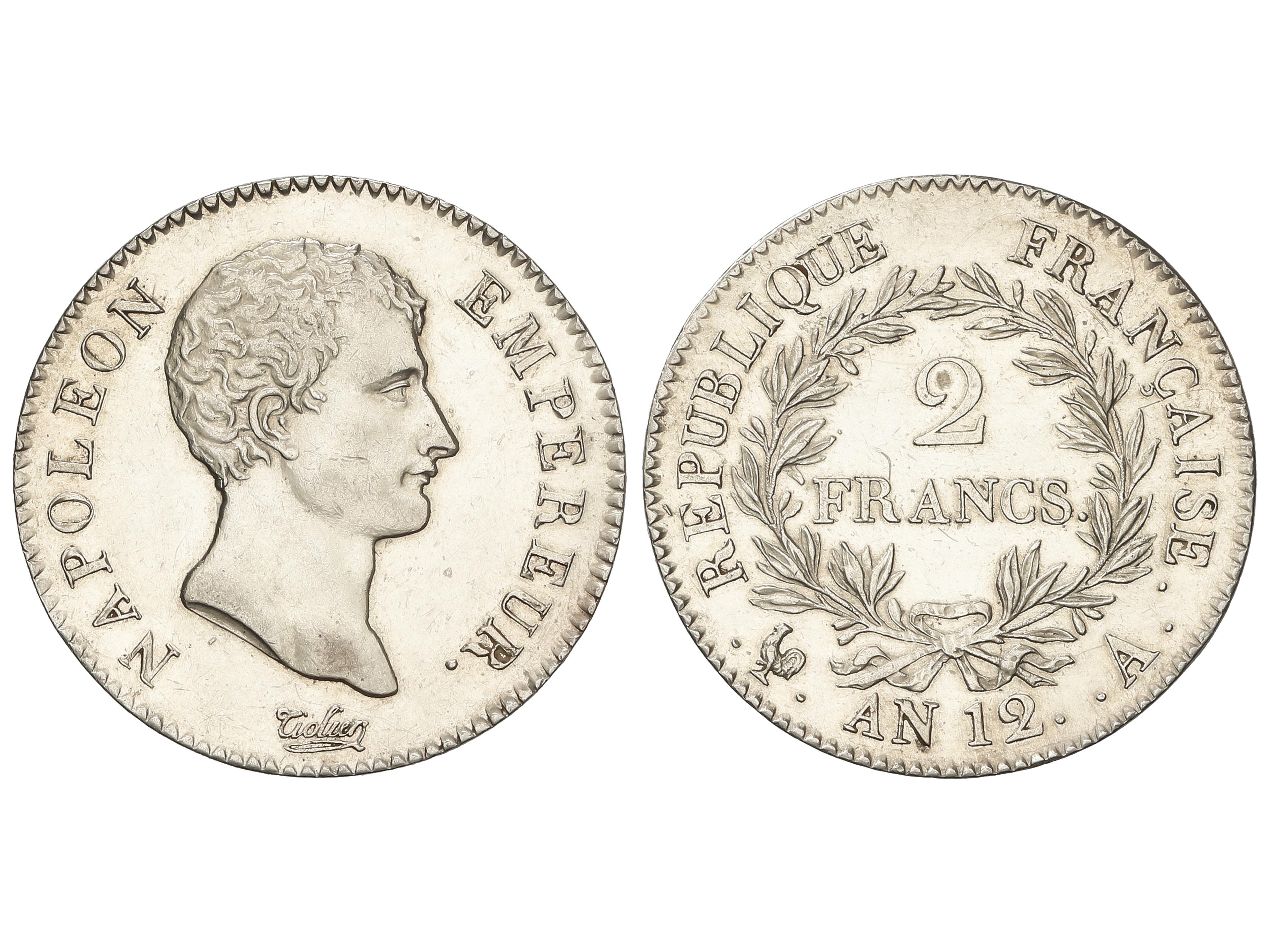 Francs. An 12-A (1803/1804). NAPOLEON BONAPARTE. PARIS. 9,94 grs. AR. (Algo limpiada). ESCASA. KM-658.1. EBC. (Image1)