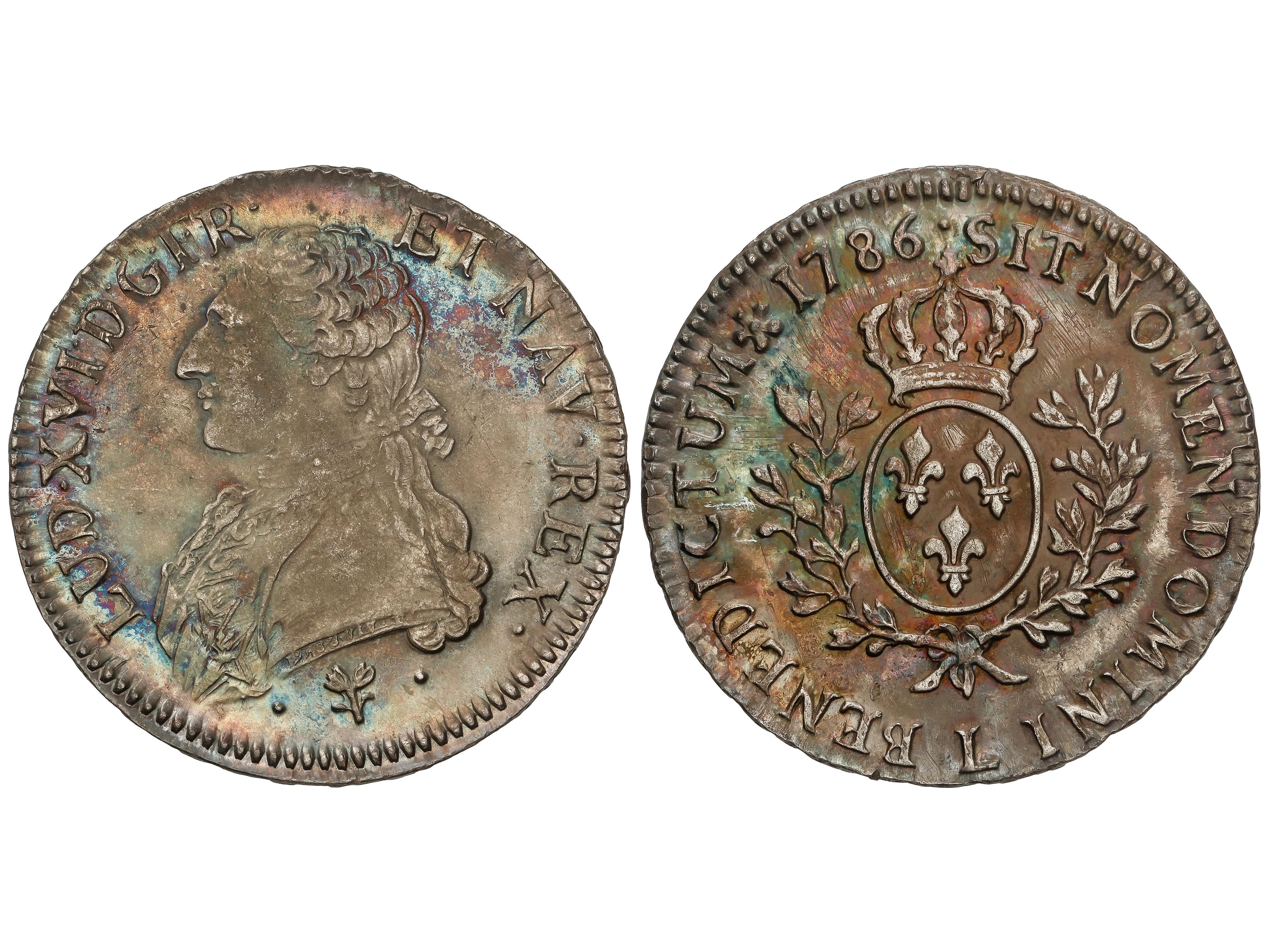 Ecu. 1786-L. LOUIS XVI. BAYONNE. 28,98 grs. AR. Bonita pátina irisada. RARA ASÍ. KM-564.9. EBC-/EBC. (Image1)