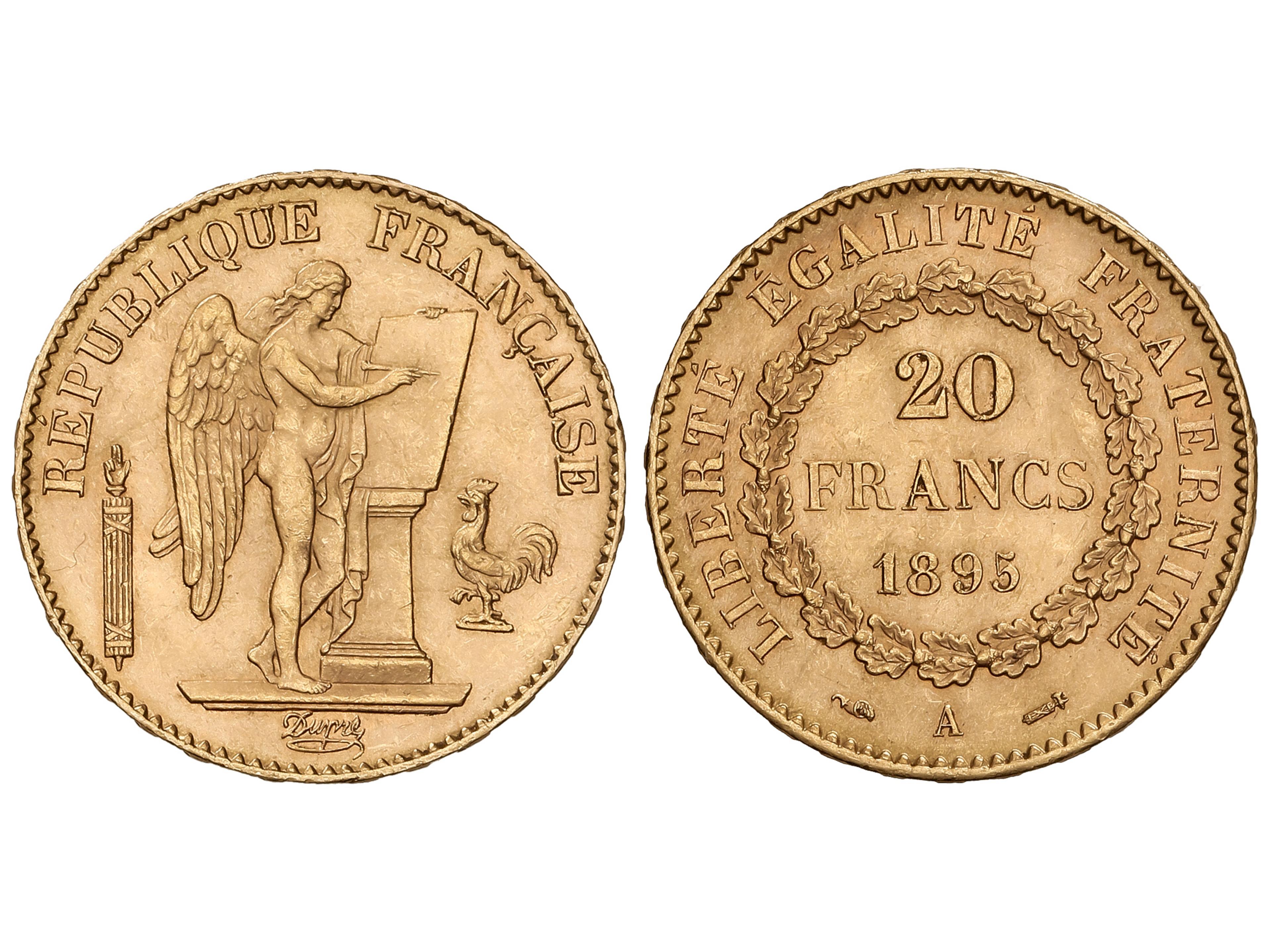 20 Francs. 1895-A. III REPUBLIQUE. PARIS. 6,43 grs. AU (900). (Leves rayitas). Fr-592; KM-825. EBC. (Image1)